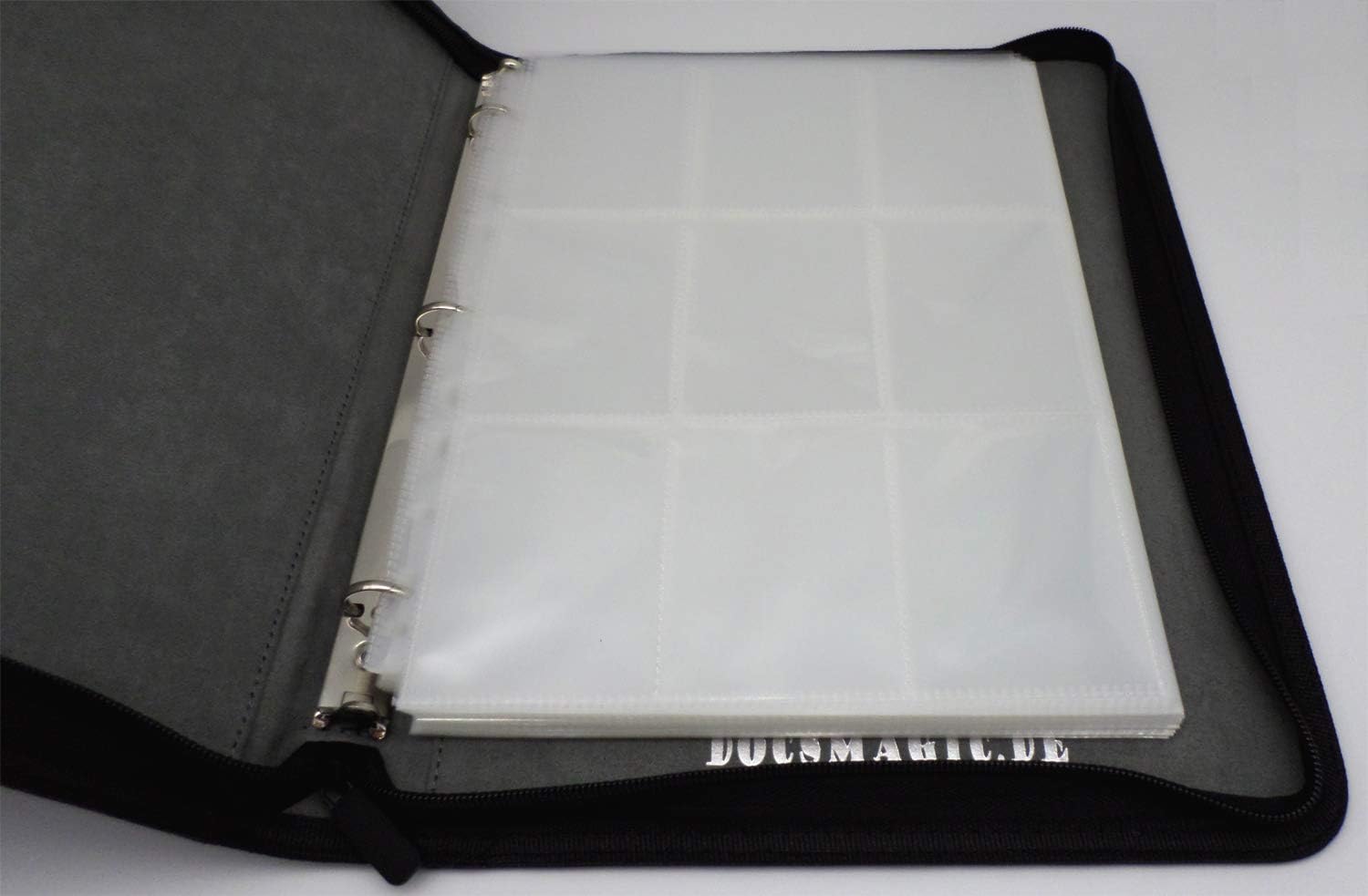 - 50 Premium (100 Micron) 9-Pocket Pages mit den Massen 66 x 92 mm je Tasche, passend für Karten ohne Hüllen, z.B. Pokemon, Yu-Gi-Oh!, Magic: The Gathering, Match Attax...