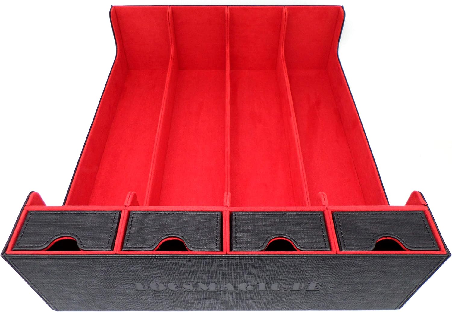 - Passend für z.B.: 16 Magnetic Flip Boxen; 20 Deck Boxen 80+; 28 Standard Deck Boxen; 2520 Karten in Premium Hüllen (+240 in den kleinen Fächern ohne Behälter); 840 Toploader.