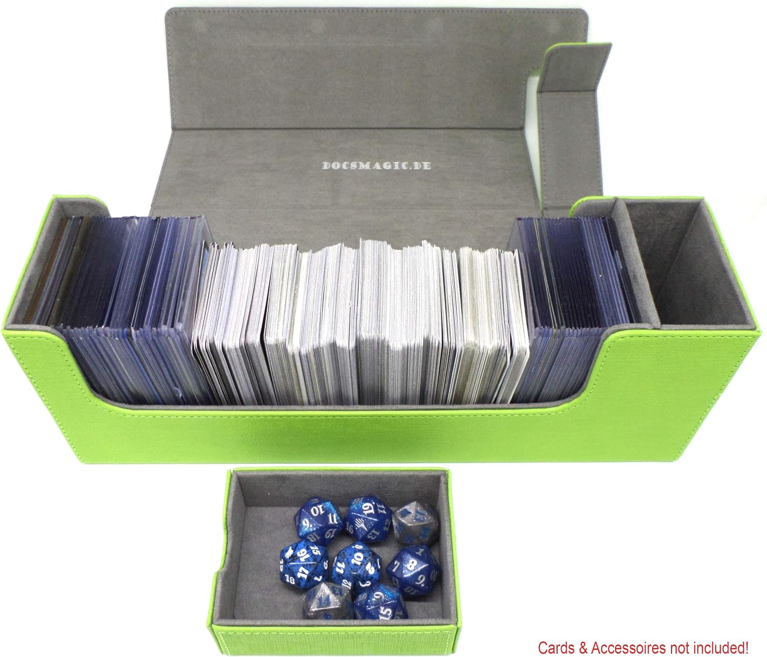 - Passend für z.B.: 3 Magnetic Flip Boxen; 4 Deck Boxen 80+; 5 Standard Standard Deck Boxen; 490 Karten in Premium Hüllen (+60 im kleinen Fach ohne Behälter); 160 Toploader...