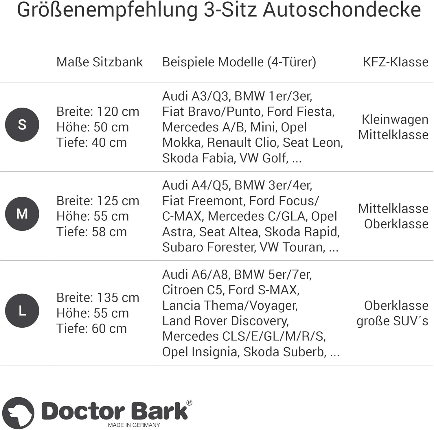 - Unsere 3-Sitz-AABMESSUNGEN: Die Kofferraumdecke misst in Grösse M ca. 90cm x 90cm x 50cm (Kofferraumtiefe x Höhe x Kofferraumbreite) und eignet sich ideal für obere Mittelkasse und Oberklassefahrzeuge.utoschondecken von Doctor Bark sind der optimale
