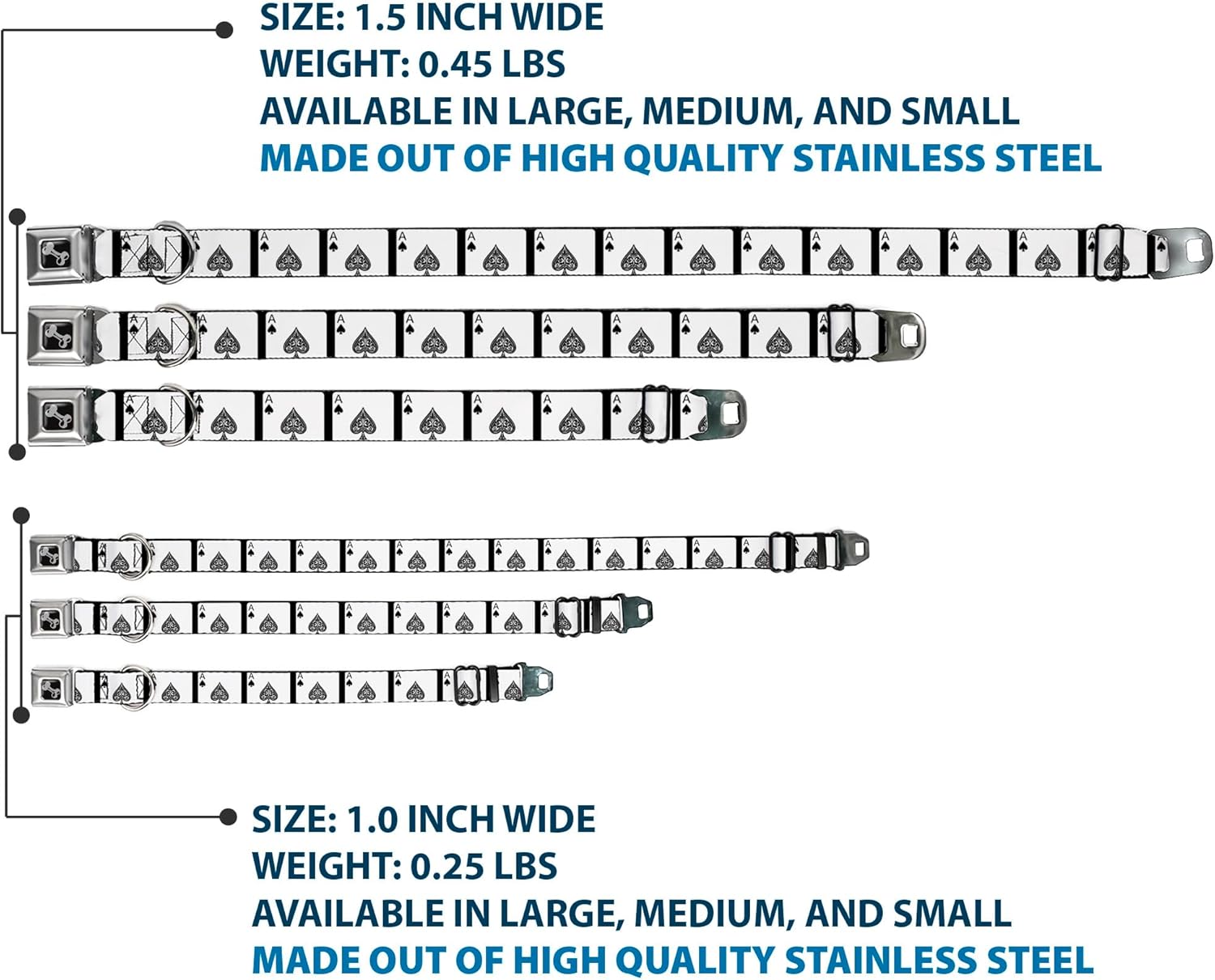 Dog Collar Seatbelt Buckle Ace of Spades 18 to 32 Inches 1.5 Inch Wide 1.5" Wide - Fits 18-32" Neck