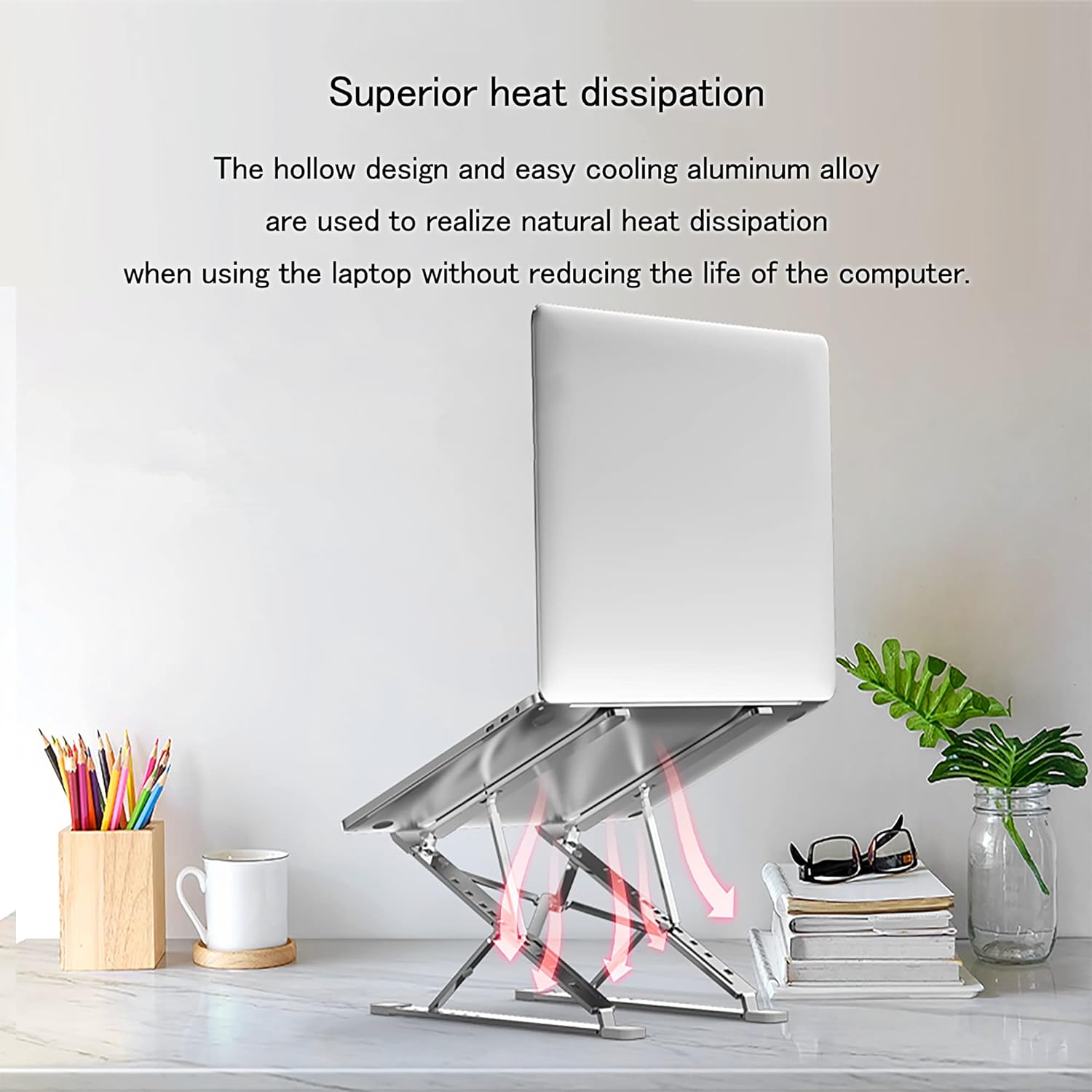 - 【Sichere Konstruktion und Rutschfest】Die unteren vier Ecken des Notebook ständer und der Teil, der den Computer trägt, sind mit rutschfesten Silikonpolstern versehen, sodass bei Bedienung die Tastatur nicht wackelt. Der Computerständer ist mit