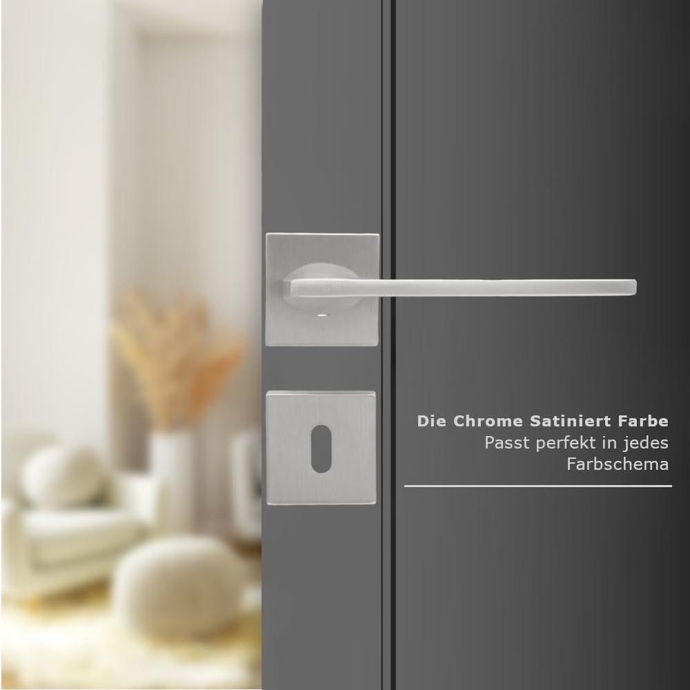 • Farbe: Chrom satiniert - Material: Legierter Stahl - Die Türklinke ist mit einer Hochhaltefeder ausgestattet und sorgt dafür, dass der Türgriff nicht hängen kann - zuverlässig, langlebig und komfortabel. Der Vierkantstift und die mitgelieferten