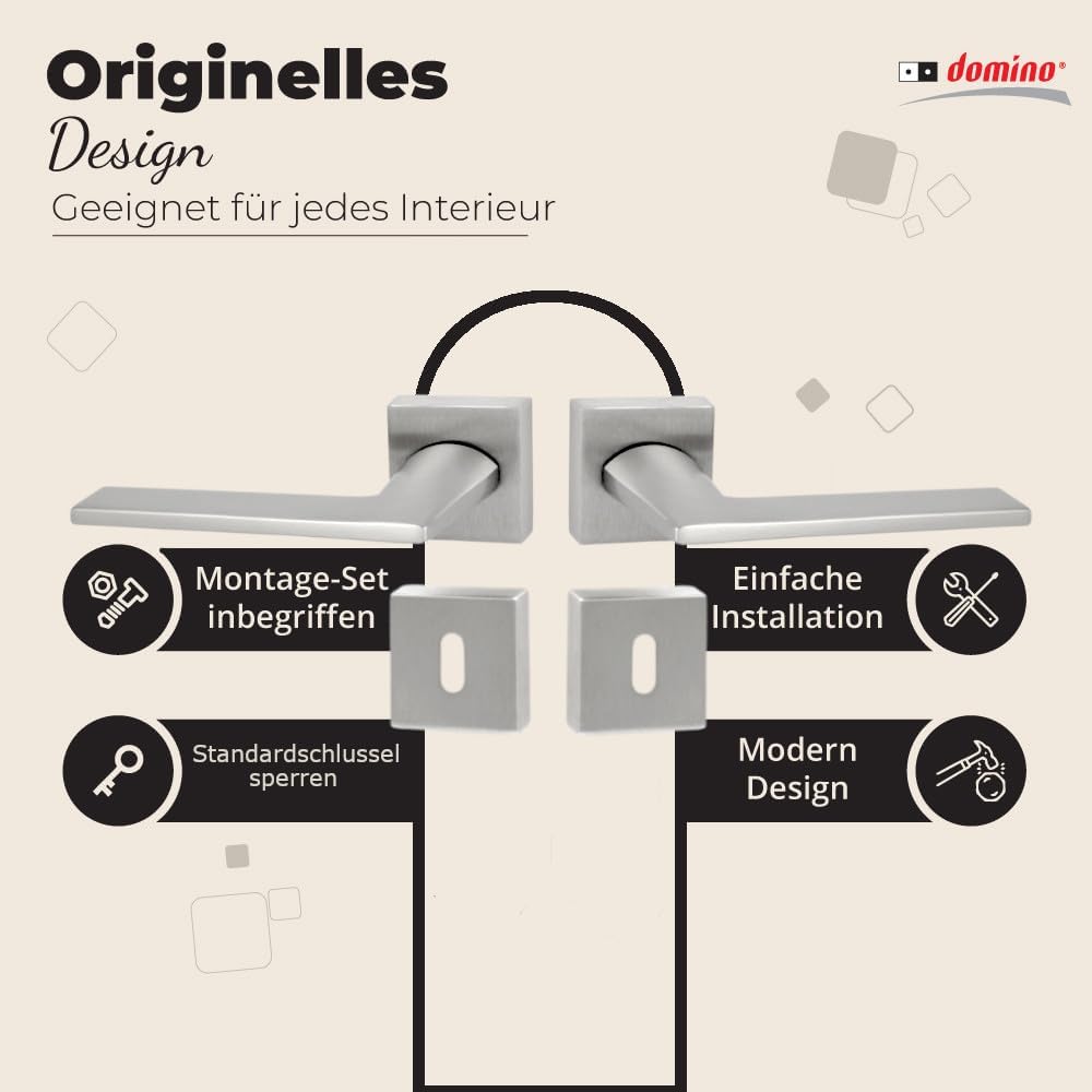 - LIEFERUMFANG: 2x hochwertige Türklinken, bei BB/PZ/WC-Variante inkl. Schlossrosetten, Hochhaltefeder, 2x Madenschrauben, Befestigungsschrauben und 1x Vierkant (8 mm stark), Gewicht (je nach Ausführung) ca. 500 g