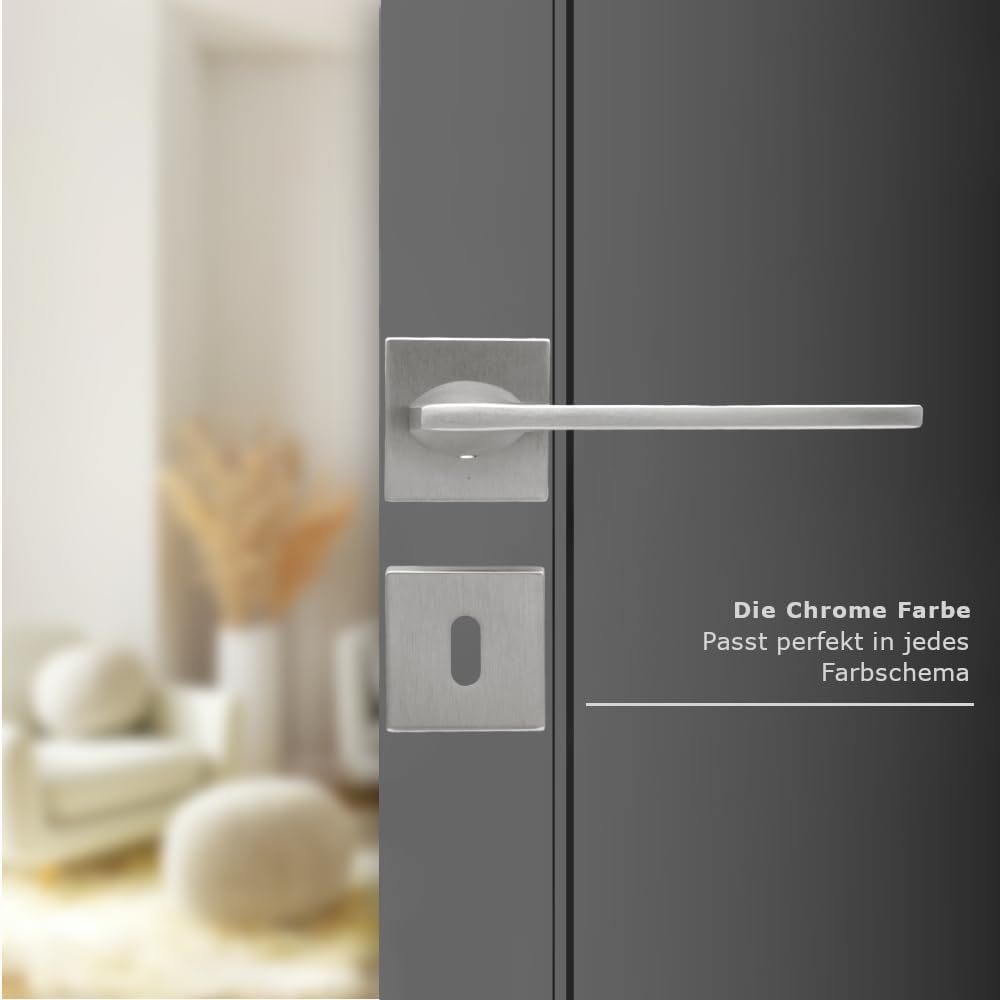 - Farbe: Chrom glänzend - Material: Legierter Stahl - Die Türklinke ist mit einer Hochhaltefeder ausgestattet und sorgt dafür, dass der Türgriff nicht hängen kann - zuverlässig, langlebig und komfortabel. Der Vierkantstift und die mitgelieferten