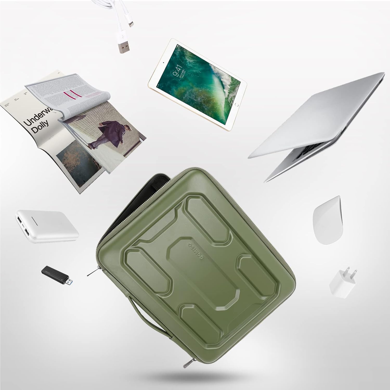 - Genügende Stauraum: Zubehör wie Mobiltelefone, Ladegeräte, Kabel, Stifte und andere Kleinteile können in zwei Innentaschen aufbewahrt werden.