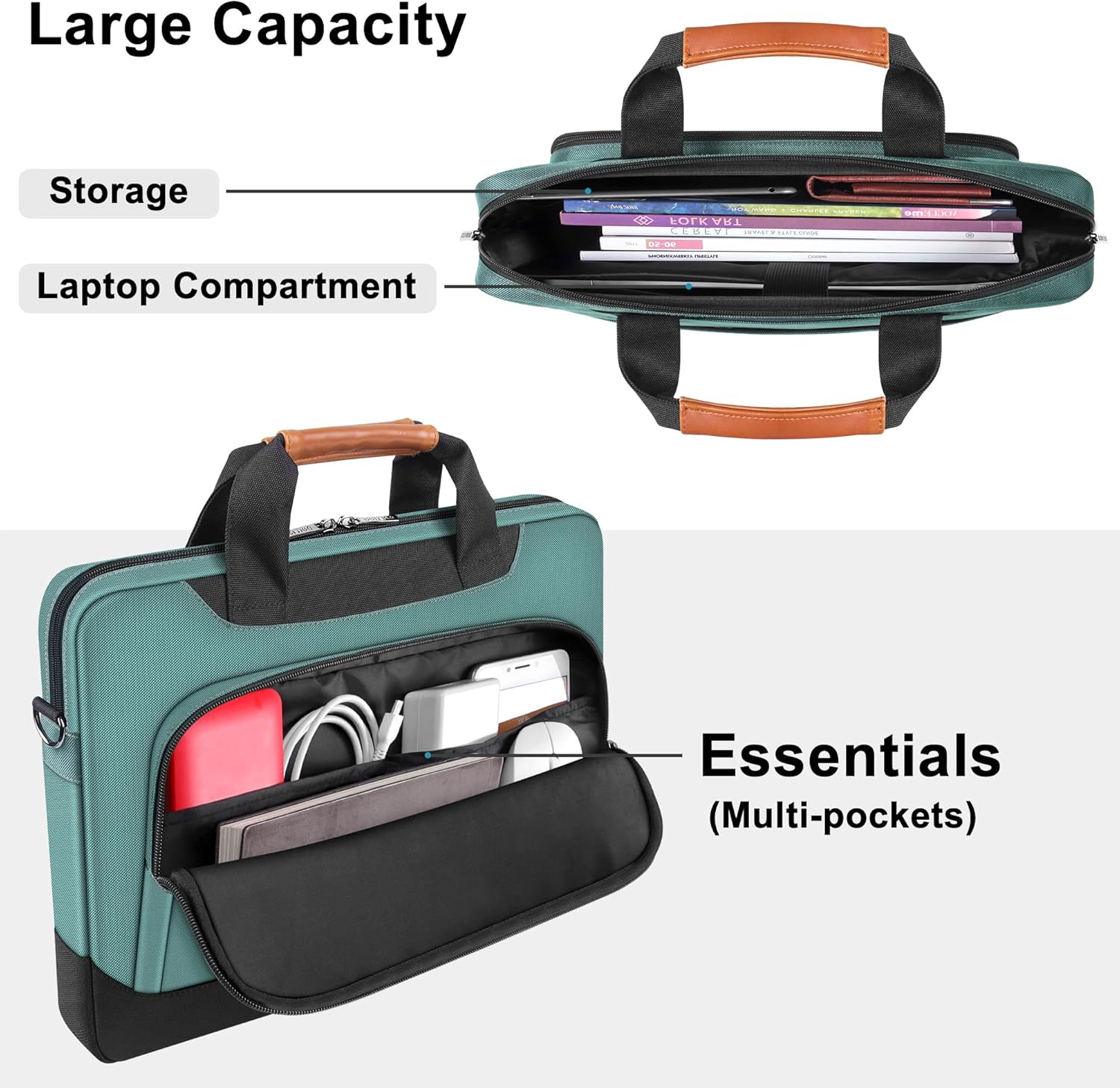 - 【MEHRFACHLAGERUNG】 1x Hauptfach, darunter 1 x Laptopfach, 1 x Fronttasche (mit Innentaschen), die ausreichend Platz für Zubehör, Bücher, Zeitungen, Netzteil, Ladegerät, Kabel, Maus, Handy, Kopfhörer, Stift bietet ,etc.