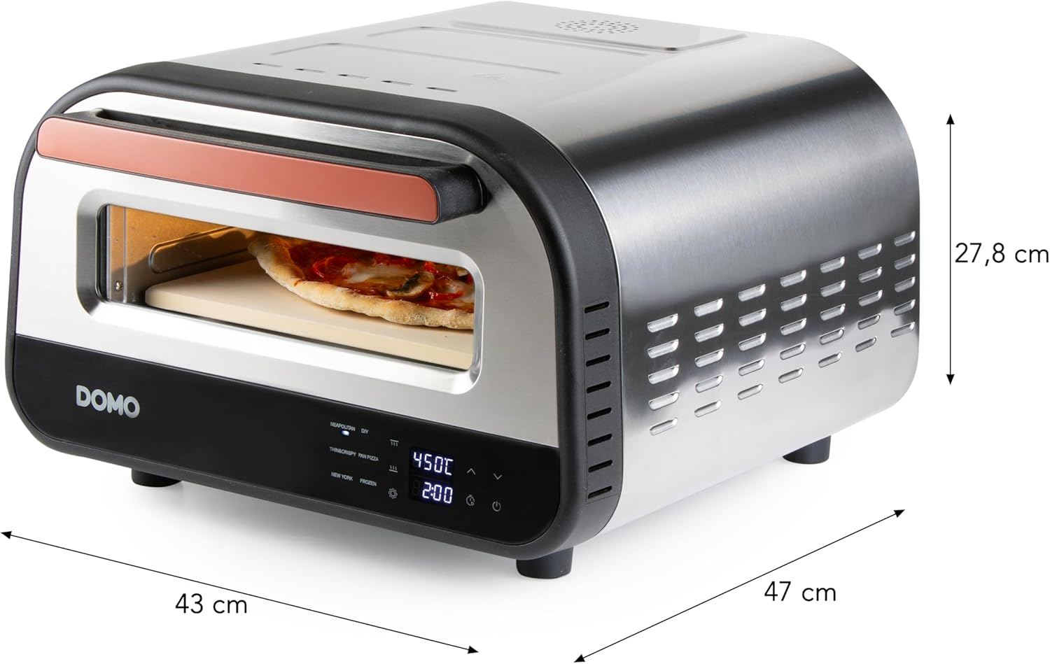 - Perfektes Kochen in nur 2 Minuten – Der elektrische Pizzaofen DOMO DO9289PZ heizt schnell auf und backt alle Ihre Lieblingspizzen auf Stein bei 450 °C mit einem garantierten knusprigen Boden