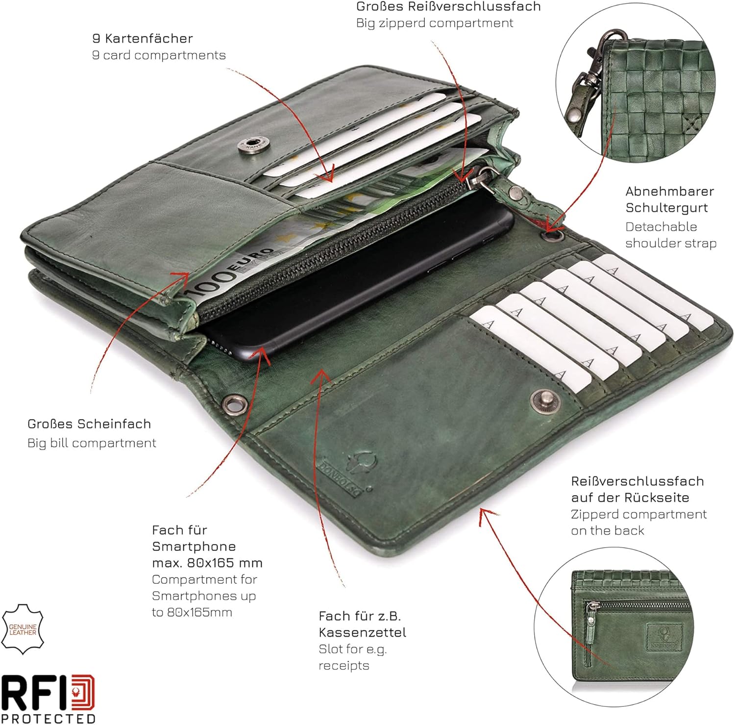 DONBOLSO® Venedig Handyumhängetasche I Damen-Geldbörse zum Umhängen I Frauen-Portemonnaie mit 9 Kred