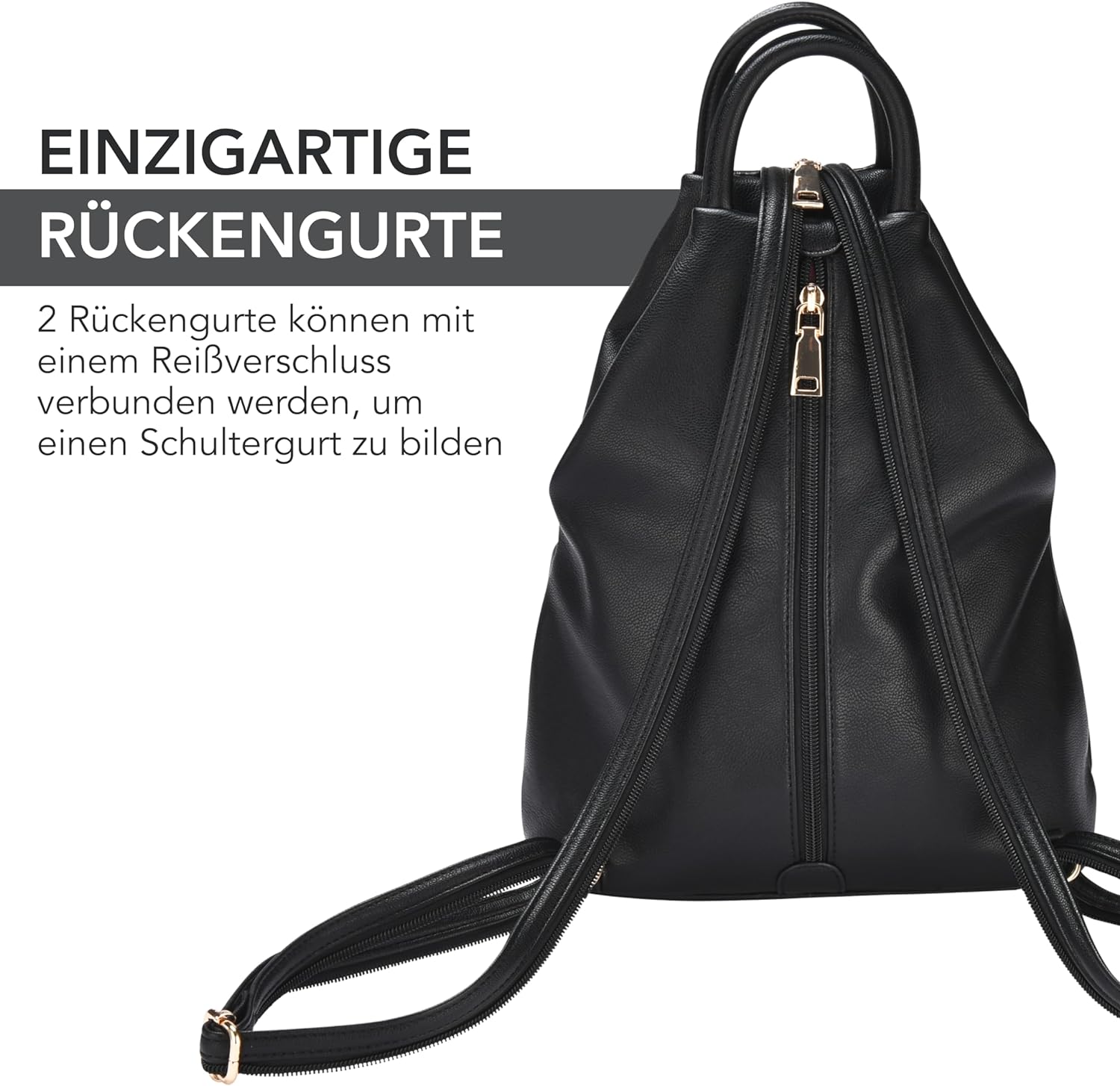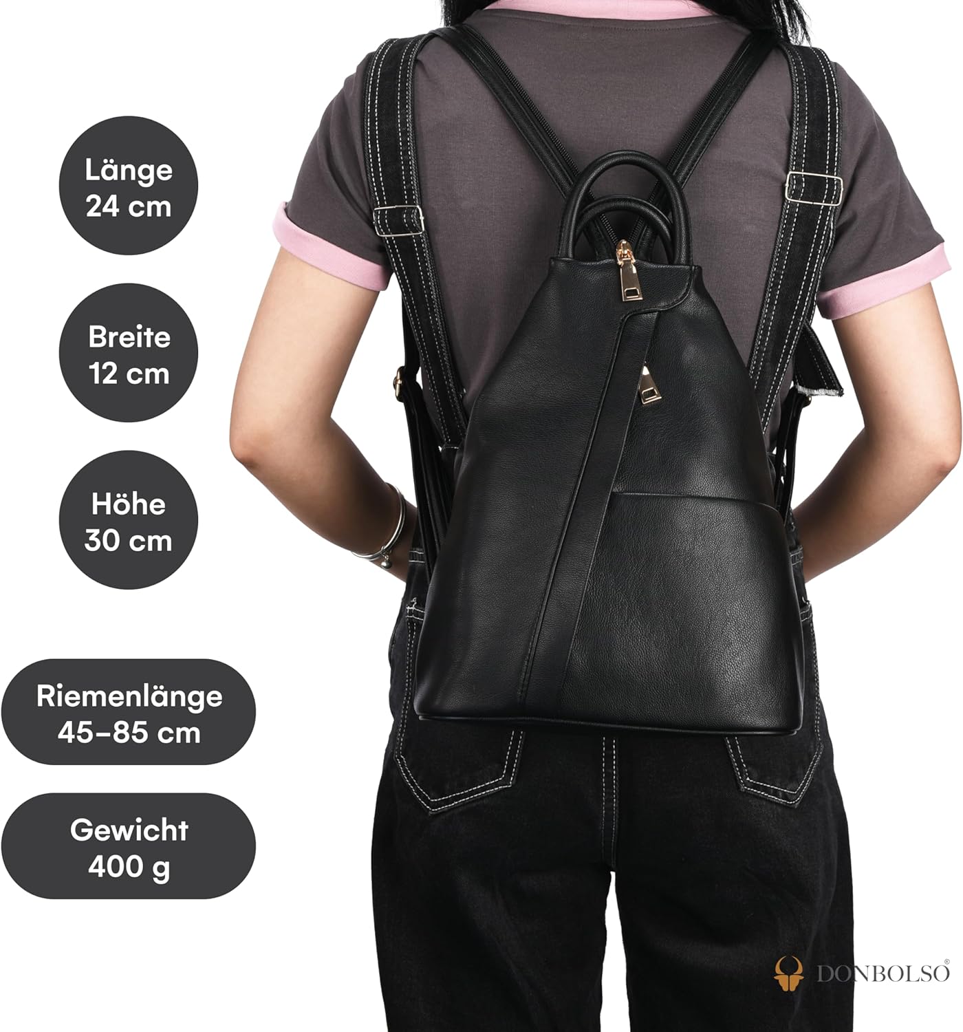DONBOLSO Damen Rucksack Tasche Umhängetasche Lederimitat 2-in-1 - Ledertaschen Frauen mit verstärkte
