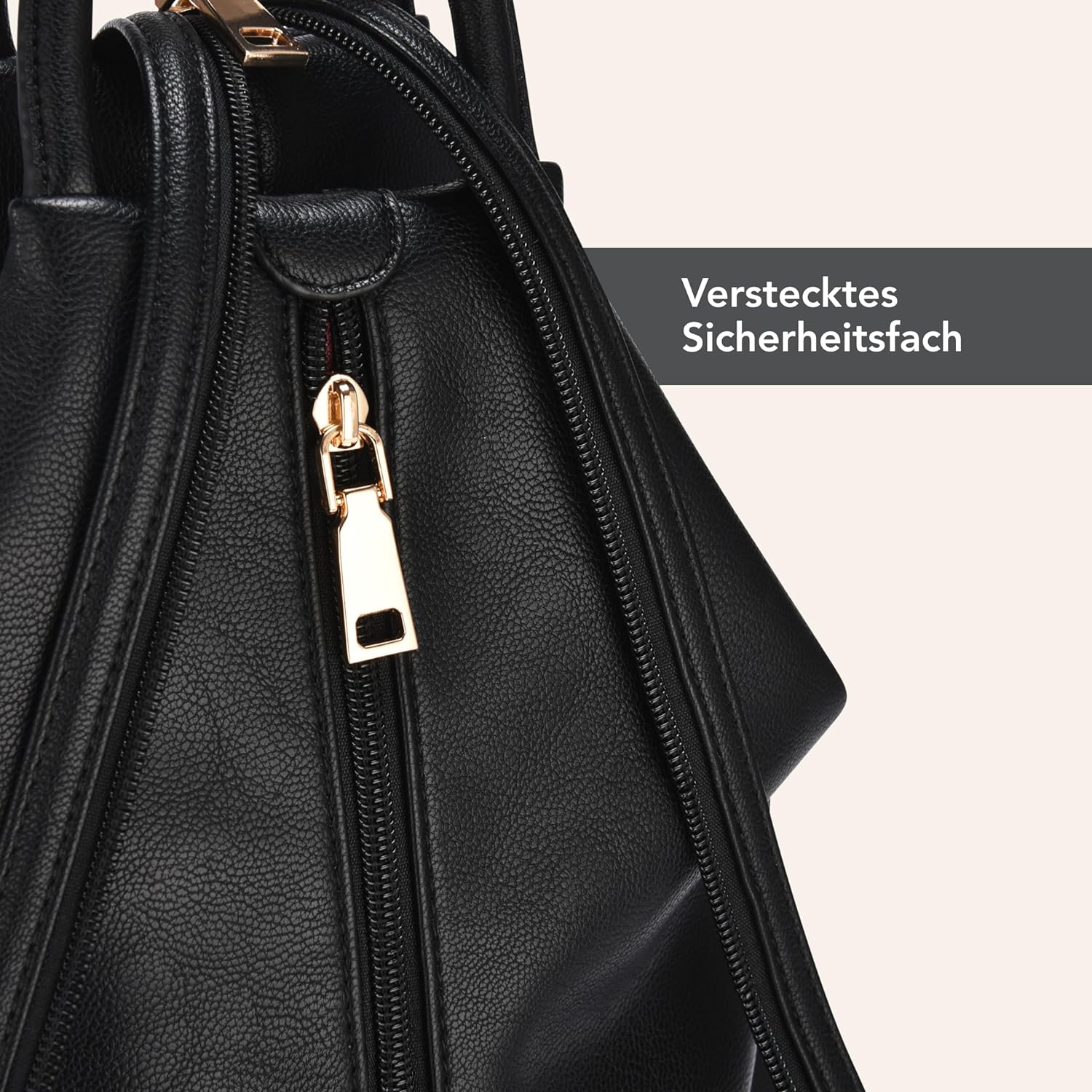 • Vielseitiger Stil: Unser Damen-Rucksack-Handtasche kombiniert Lederimitat mit 2-in-1 Funktionalität. Stilbewusste Frauen schätzen das Zusammenspiel aus Design und Nutzen.