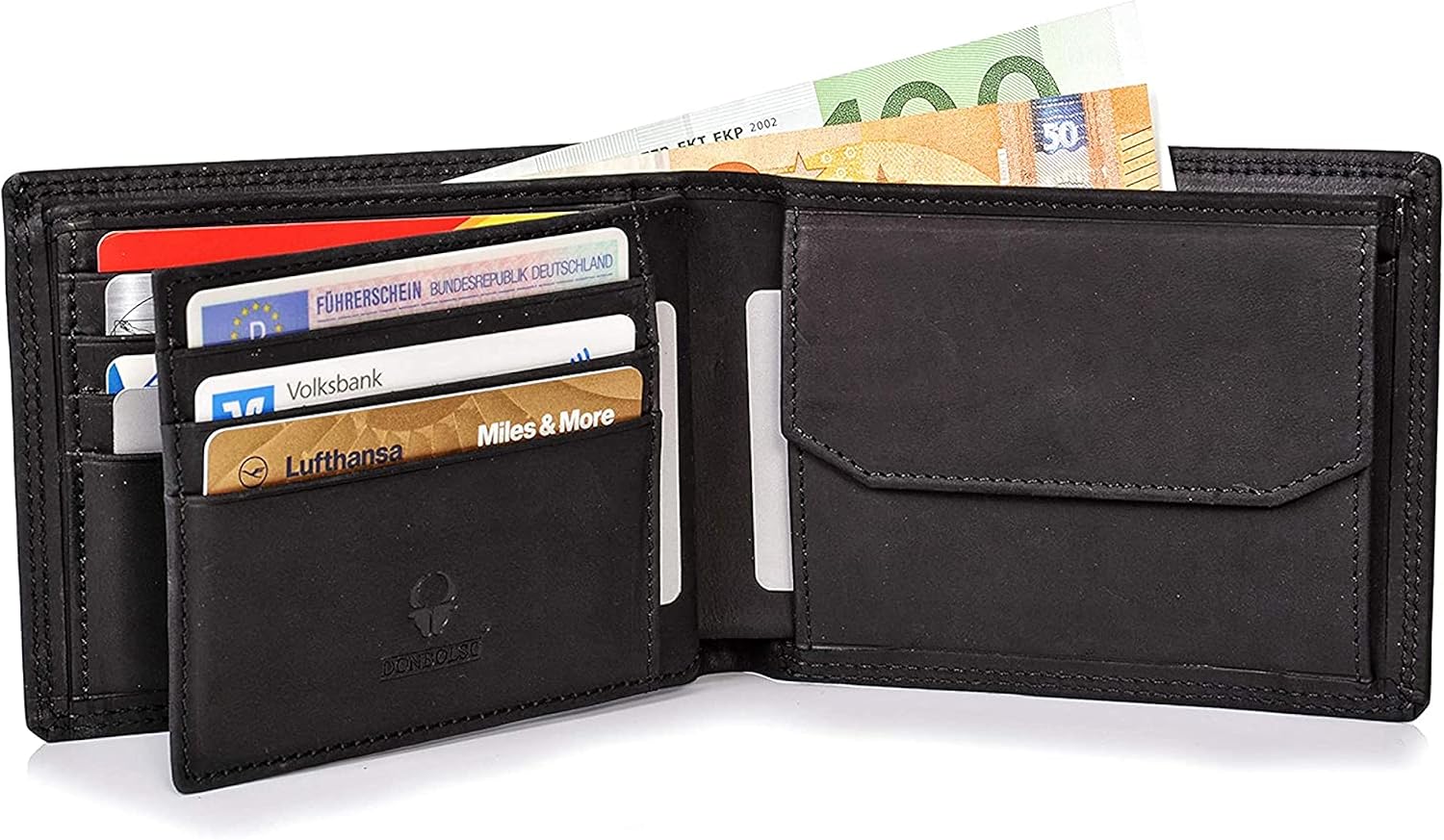 - AUSWEISFACH - Unsere Geldbörsen sind besonders grosszügig und geräumig gestaltet und besitzen auch für grössere Utensilien wie Fahrzeugschein, Personalausweis und den alten Führerschein Stauraum.