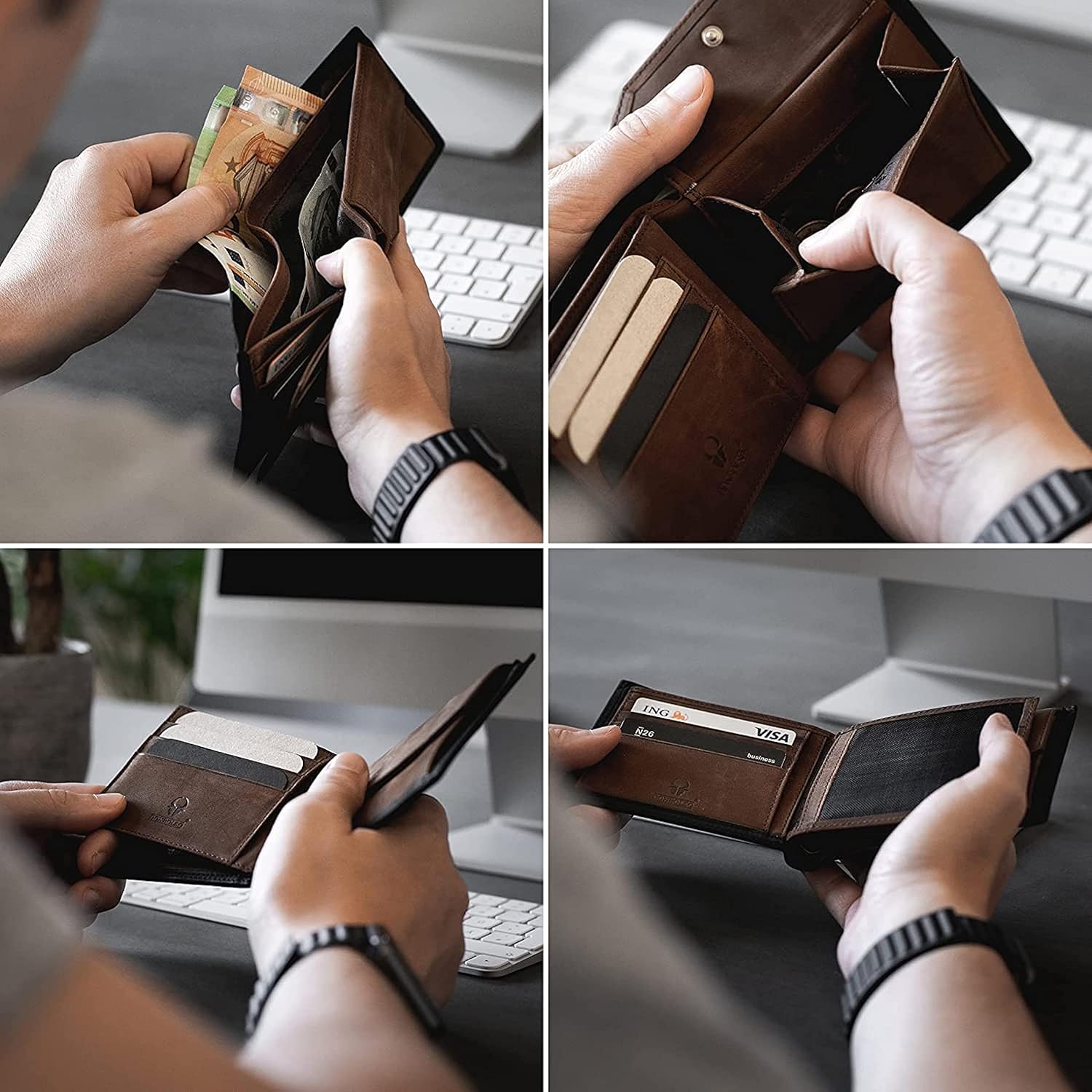 - ECHT HOCHWERTIG - Für die Produktion unserer Herrengeldbörse wird ausschliesslich echtes Leder verwendet. Du wirst den Unterschied fühlen! Only real leather for real active men!
