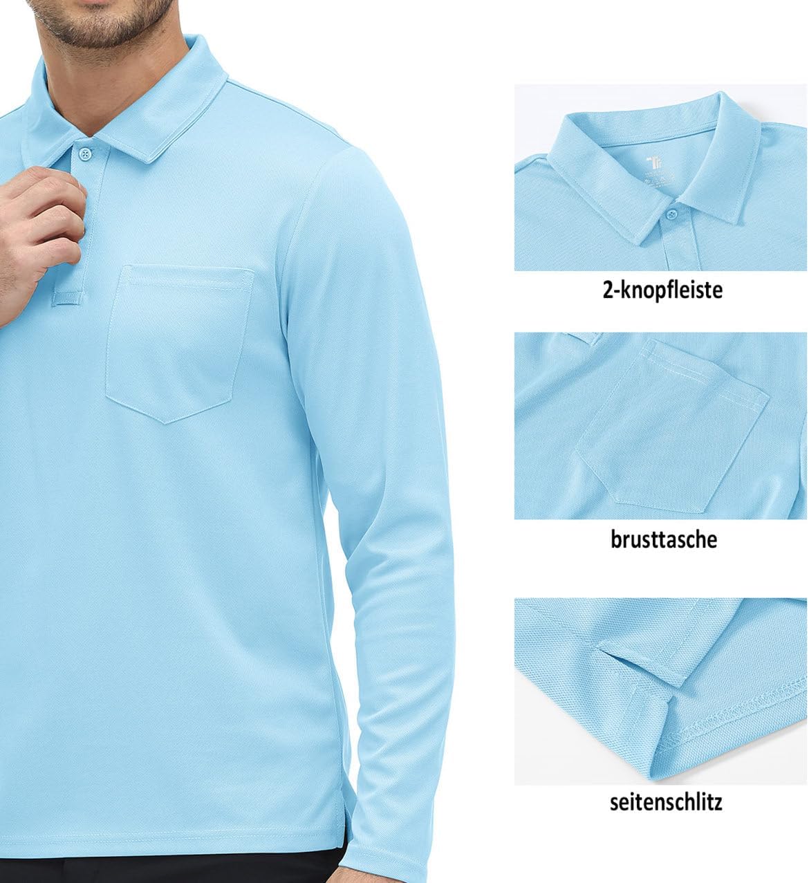 - ✓ Herren Polo Kragen Funktionsshirt mit Brusttasche am linken Seite für schlüssel, karten und andere tragbare gegenstände.