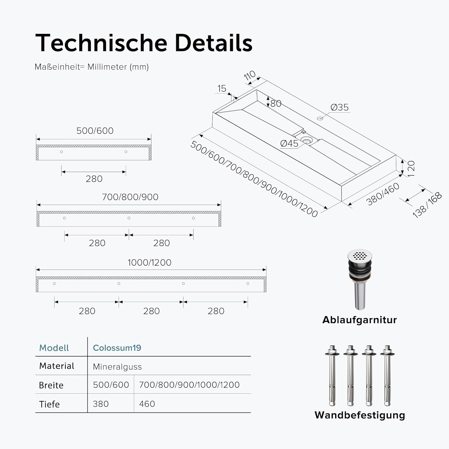 - als Aufsatzwaschbecken oder Hängewaschbecken geeignet | DIN Anschlüsse | leichte Reinigung