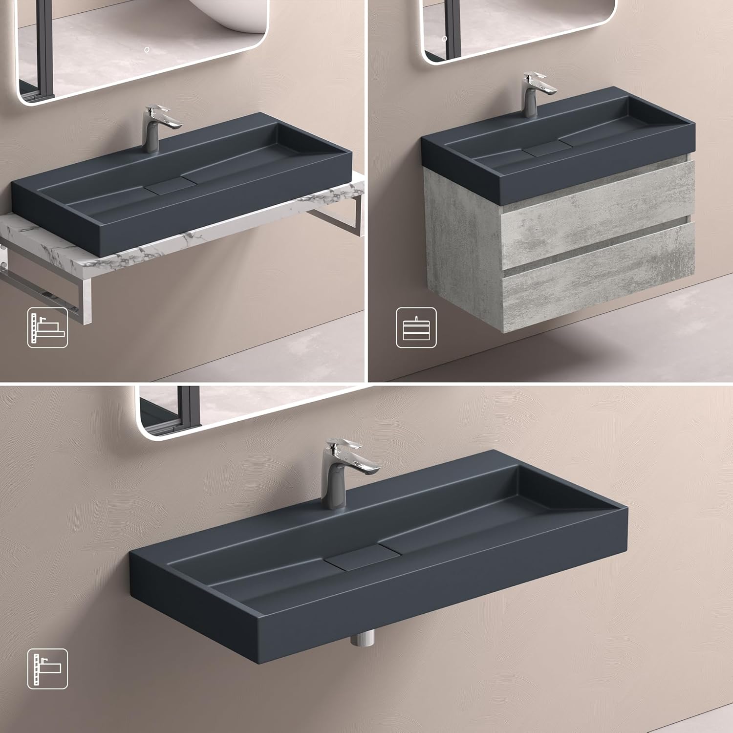 - Design Waschbecken Colossum19 matt Anthrazit | Edler Gussmarmor aus einem Stück