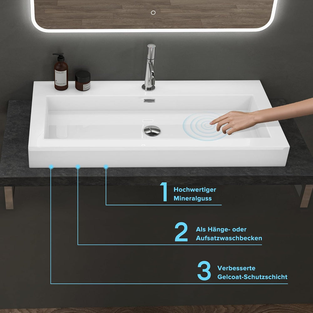 - Im Lieferumfang enthalten ist nur das Aufsatzwaschbecken. Abgebildete Accessoires wie Wasserhahn, Ablaufgarnitur, Spiegel usw. sind in der Lieferung nicht enthalten.