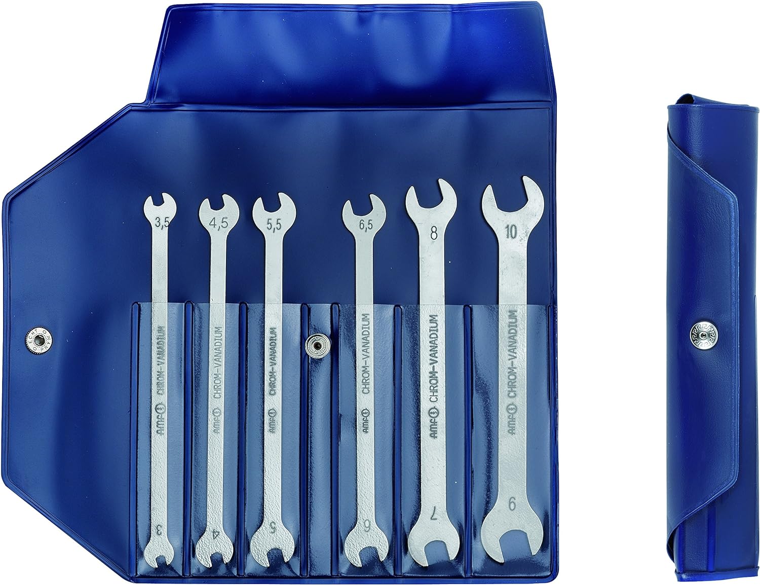 • in Kunststoffrolltasche; 6-teilig; CHROM-VANADIUM; Gehärtet und vernickelt; Mäuler nach ISO 691-1; lange Lebensdauer