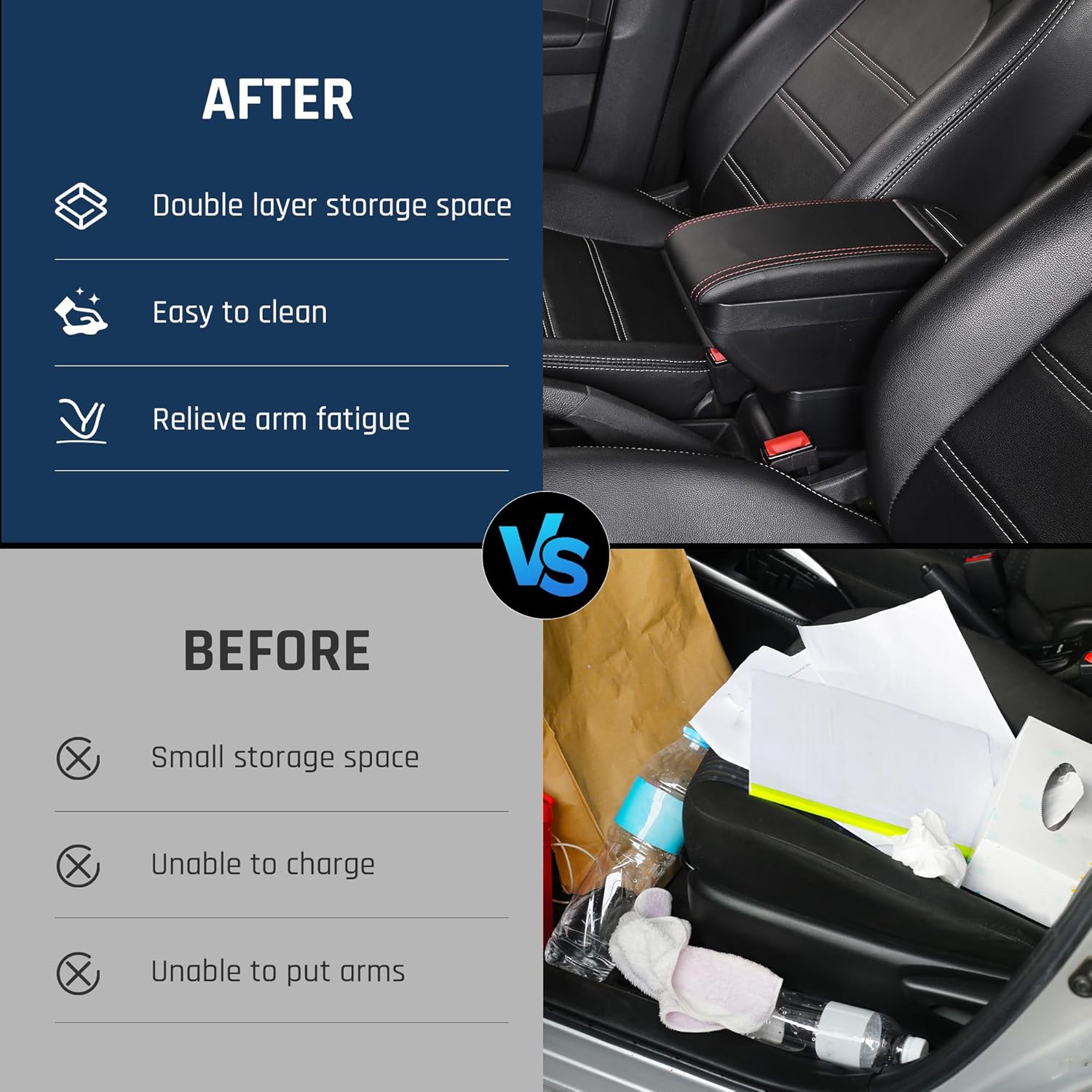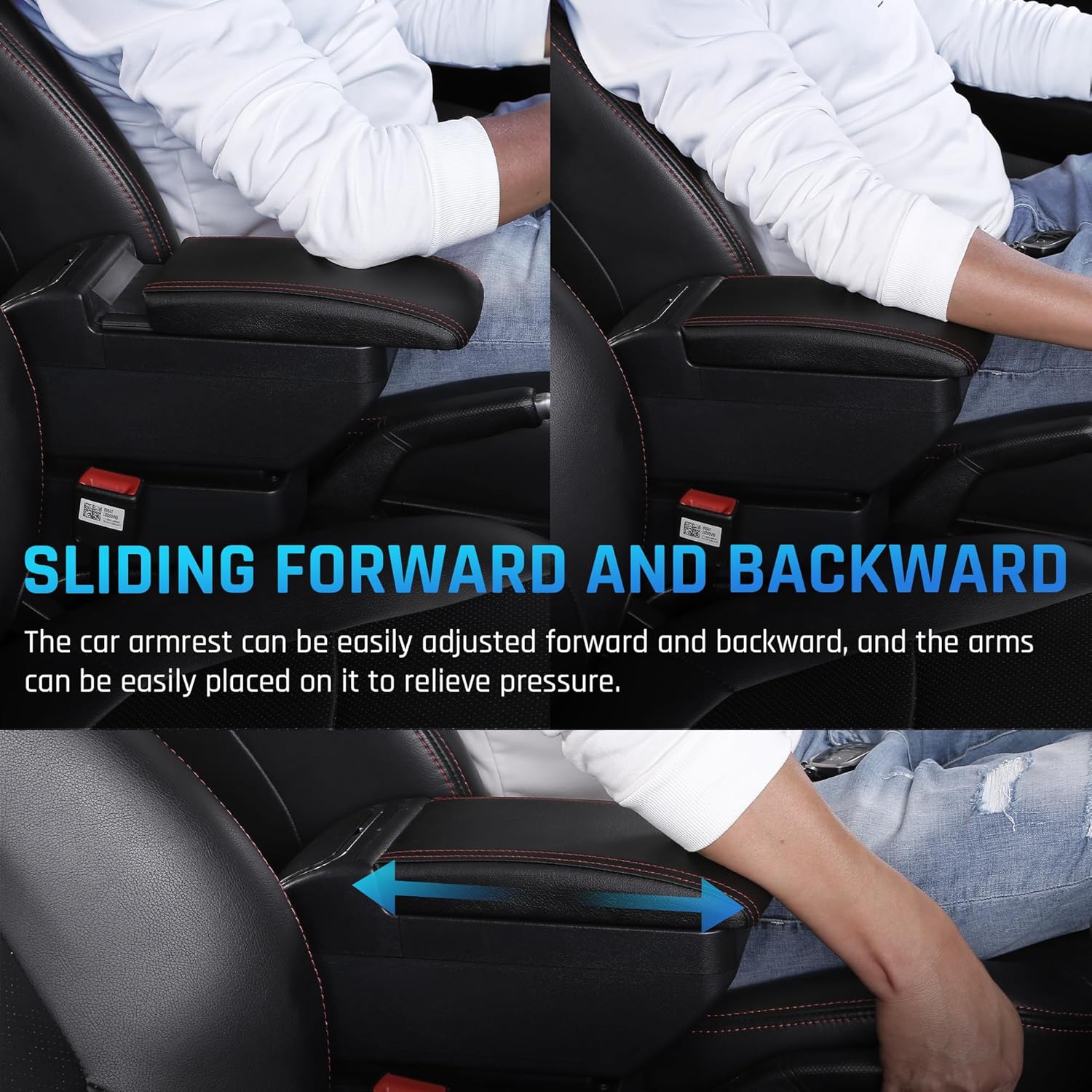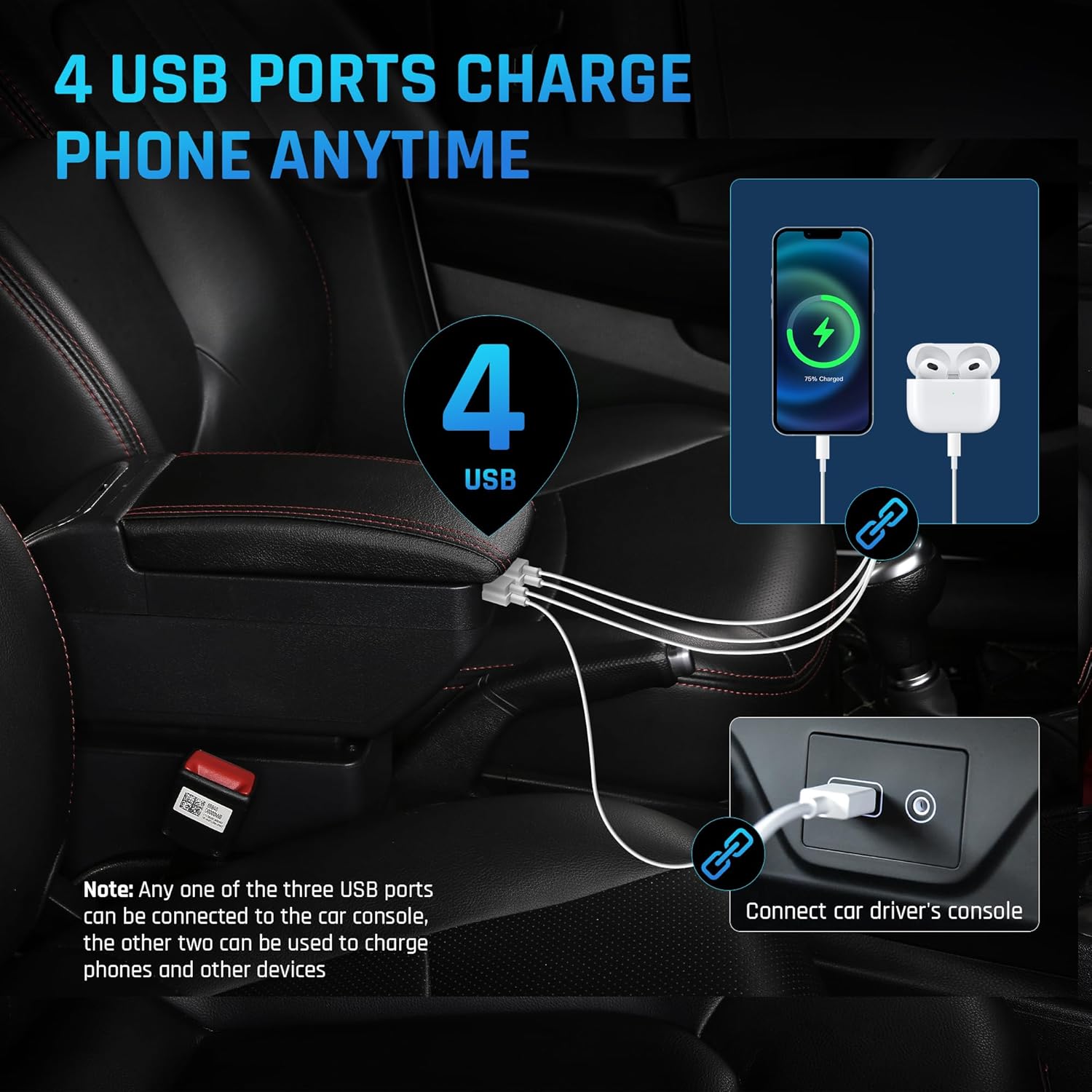 - Der Becherhalter, der von der Armlehnenbox getragen wird, ist bequem für Sie, Tassen oder Getränke zu setzen. Es ist sehr bequem und einfach zu reinigen. Mit 4-USB-Ladeanschlüssen können Sie Mobiltelefone oder Tablets gleichzeitig aufladen, um