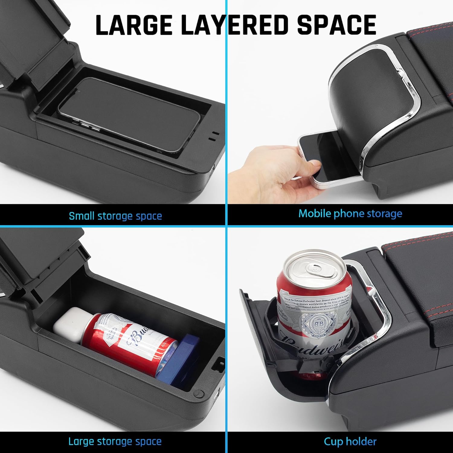 - Der Becherhalter, der von der Armlehnenbox getragen wird, ist bequem für Sie, Tassen oder Getränke zu setzen. Es ist sehr bequem und einfach zu reinigen.