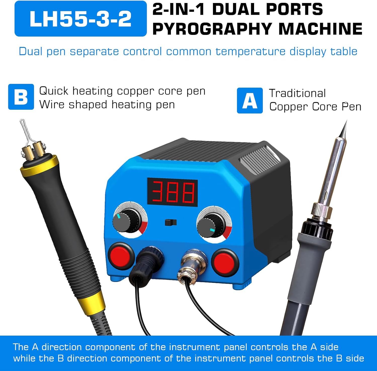 - Einstellbare Temperatur: Die Temperatur der Brandmalereistation ist von 392 bis 1382 °F (200 bis 750 °C) einstellbar. Geeignet für Brandmalerei auf Holz und Leder. Ausgestattet mit zwei unabhängigen Schaltern und Temperatureinstellungen. Sie können