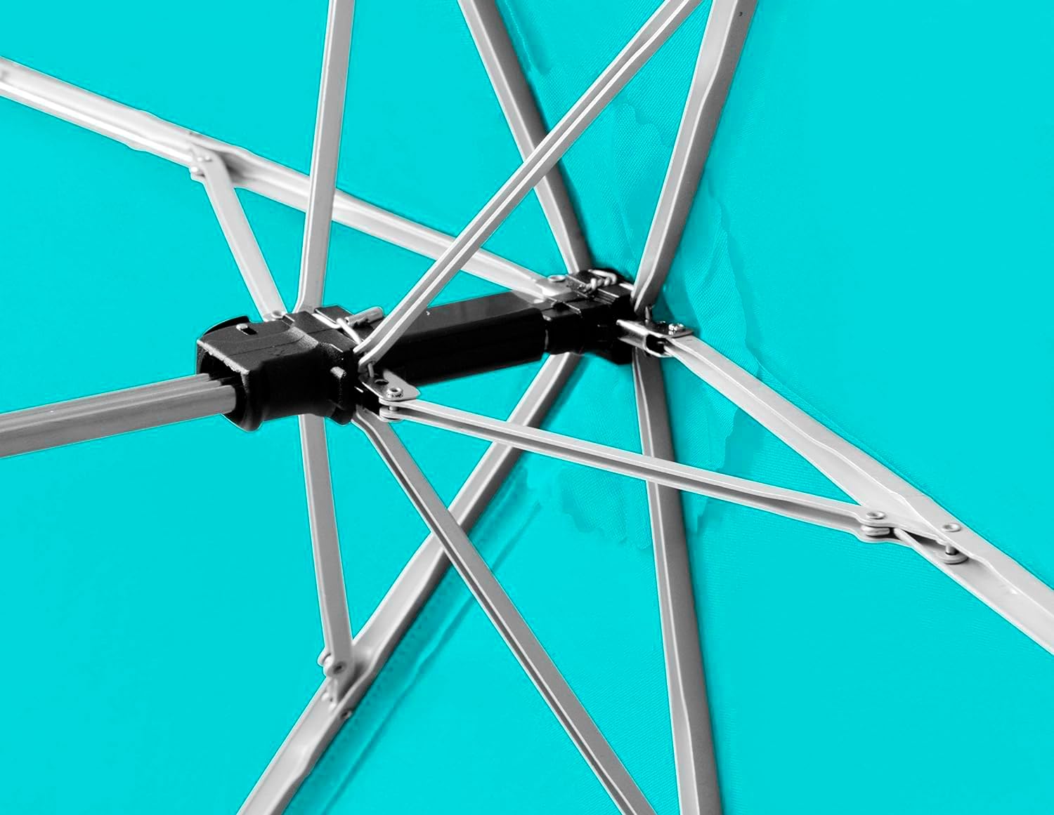 - Die Farbe des Schirmdaches ist hellblau, das verwendete Material besteht aus 100% Polyester.