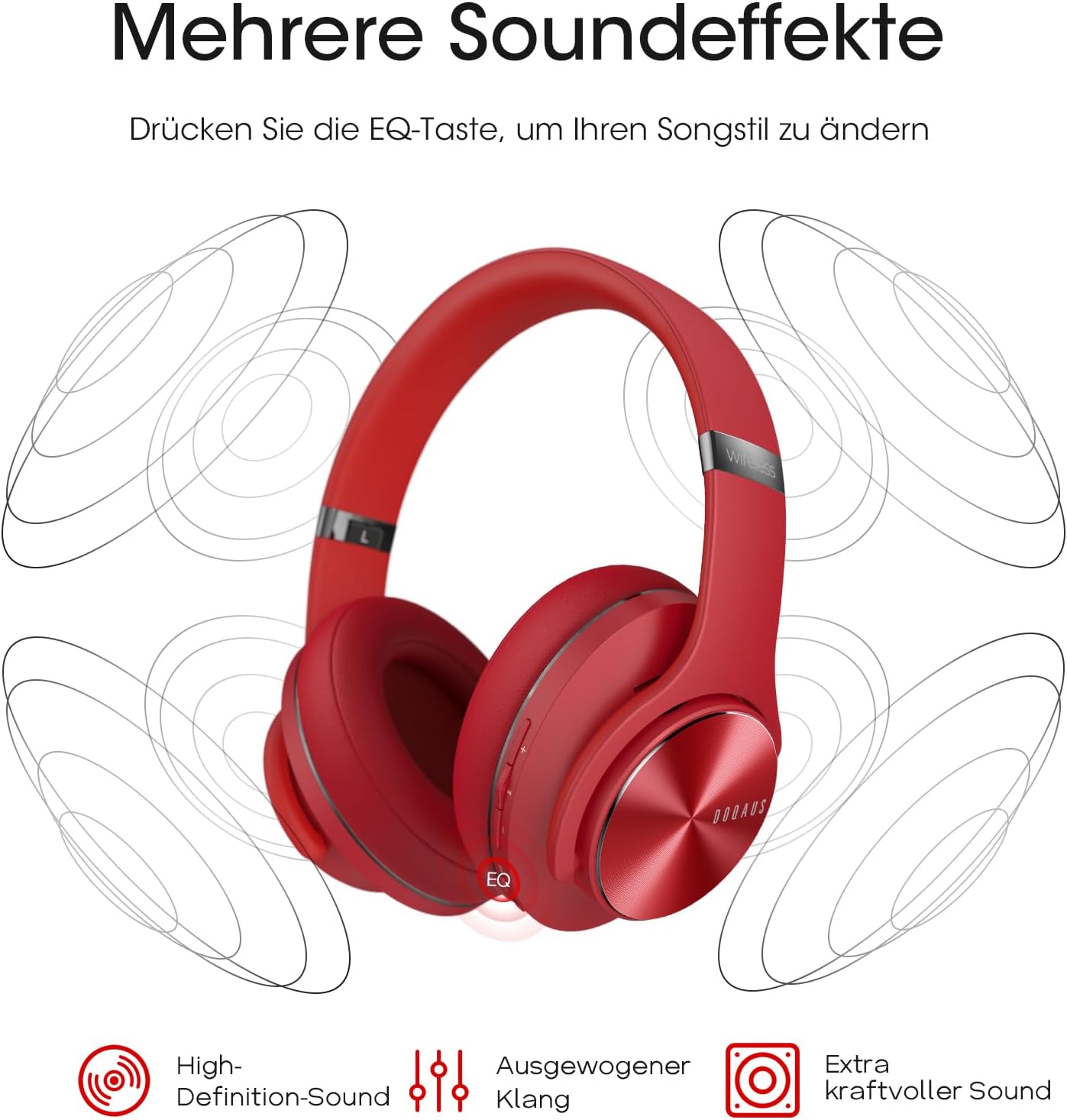 - 【Optimierte Klangqualität mit 3-EQ-Modi】 DOQAUS ist stets auf dem Laufenden, um bessere Klangeffekte und ein besseres Hörerlebnis zu erzielen. Ein grosser Schritt, den DOQAUS getan hat: DOQAUS Care 1 Over Ear Kopfhörer Bluetooth verfügen über 3