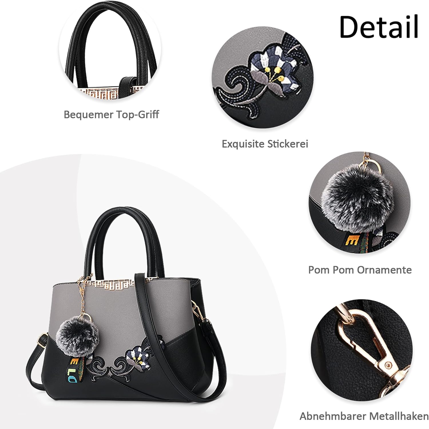 - Modisches Stickdesign: Elegante Handtasche für Frauen. Leichte, bequeme und modische Umhängetasche. Attraktives und trendiges Damenhandtaschendesign. Einfaches einfarbiges Design, das sich mit schöner Stickerei verbindet. Es ist einfach, verschiedene