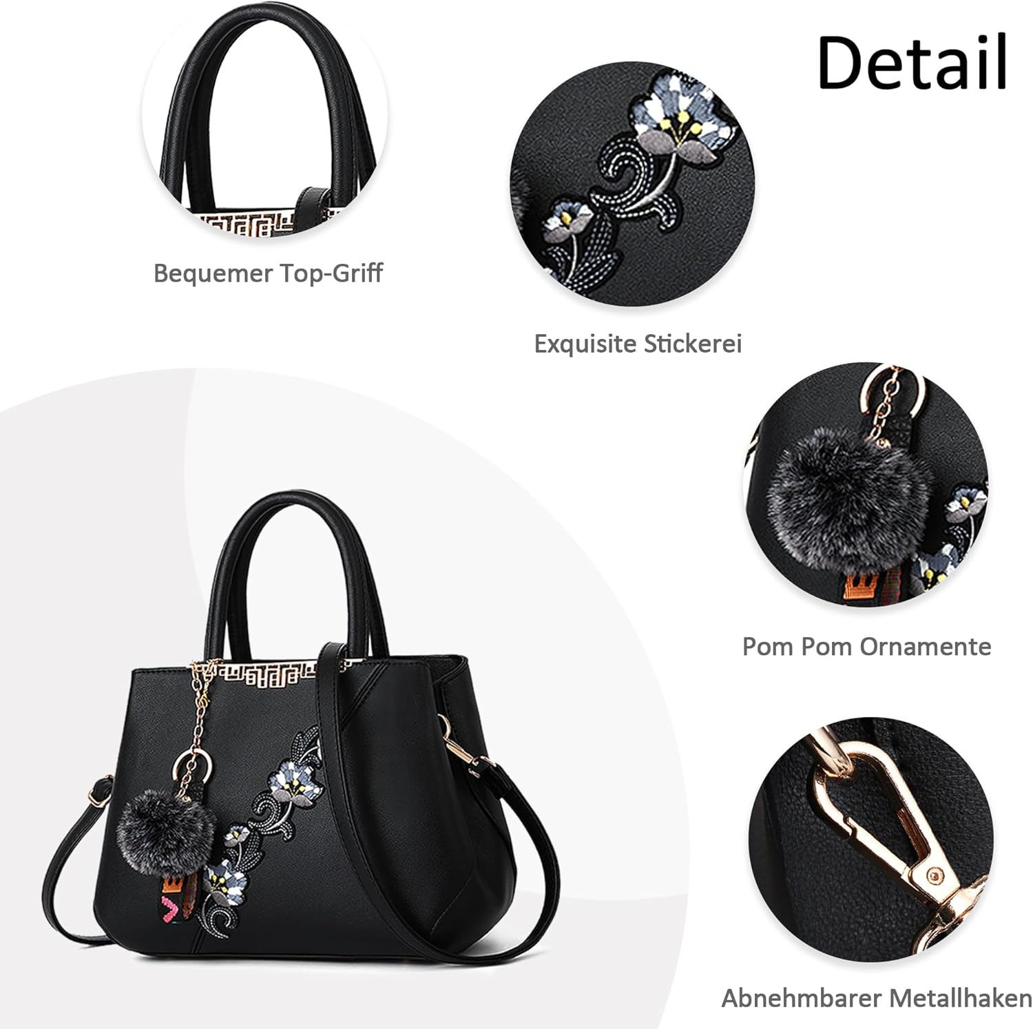 - Modisches Stickdesign: Elegante Handtasche für Frauen. Leichte, bequeme und modische Umhängetasche. Attraktives und trendiges Damenhandtaschendesign. Einfaches einfarbiges Design, das sich mit schöner Stickerei verbindet. Es ist einfach, verschiedene