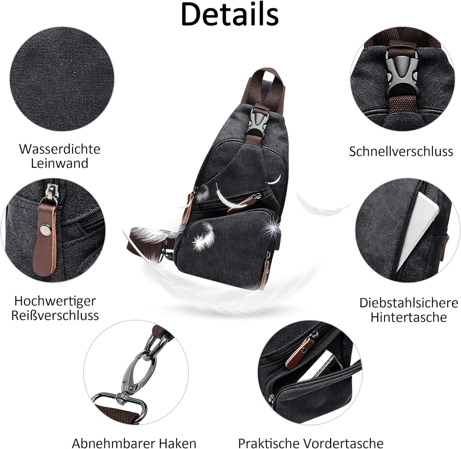 - ★ USB-Ladeanschluss-Design: In der Tasche befindet sich ein USB-Anschluss-Design, das bequem zu verwenden ist. Es ist sehr praktisch zum Reisen und Ausgehen.