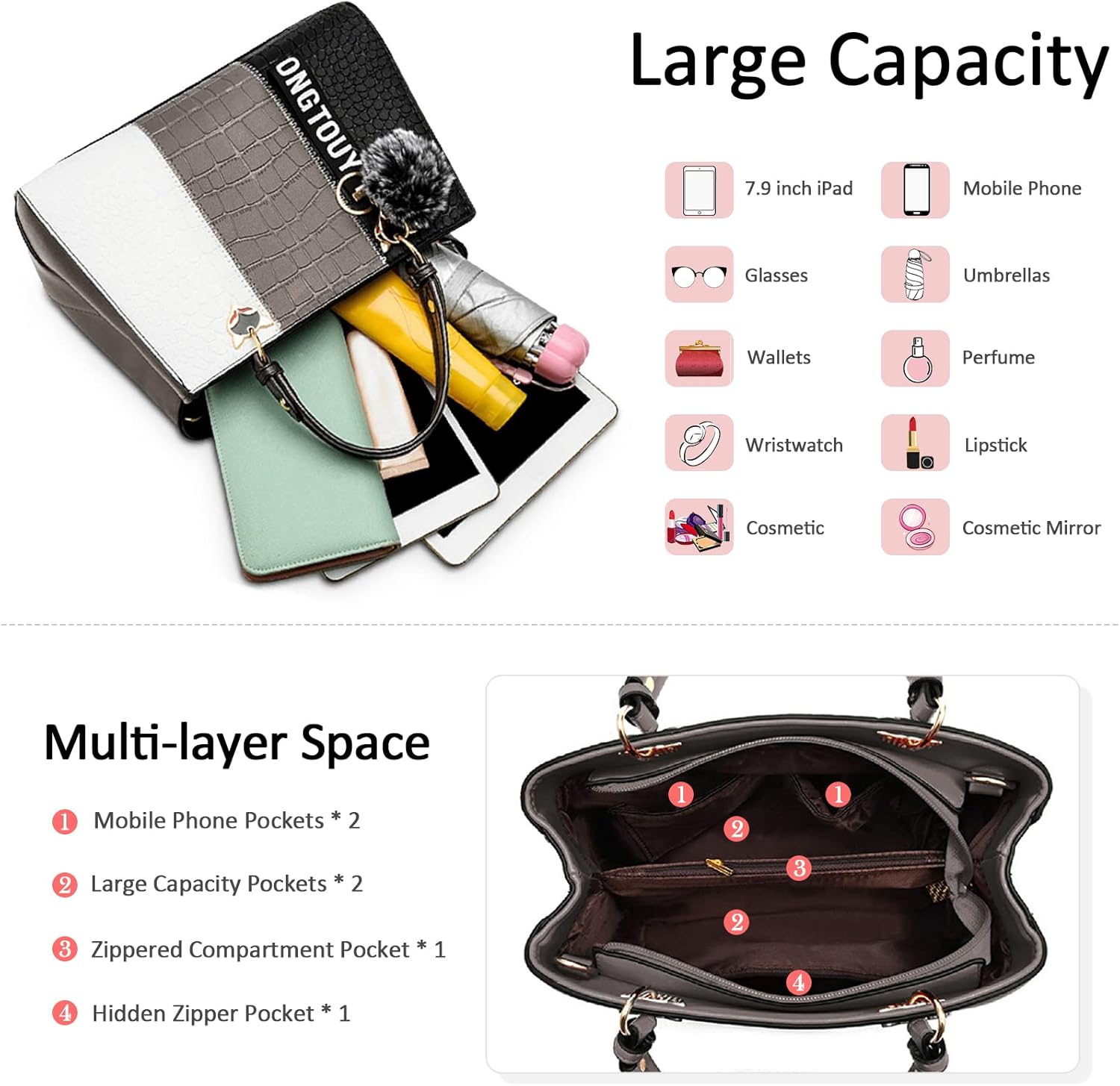 • Struktur: Design in 3 verschiedenen Farbkombinationen. Stilvolles und schickes Design. 1 * Tasche mit grosser Kapazität. Innere eine Reissverschlusstasche. 2 kleine Taschen auf der Innenseite. Es kann Ihre täglichen Dinge wie Kosmetik, Sonnenbrille,