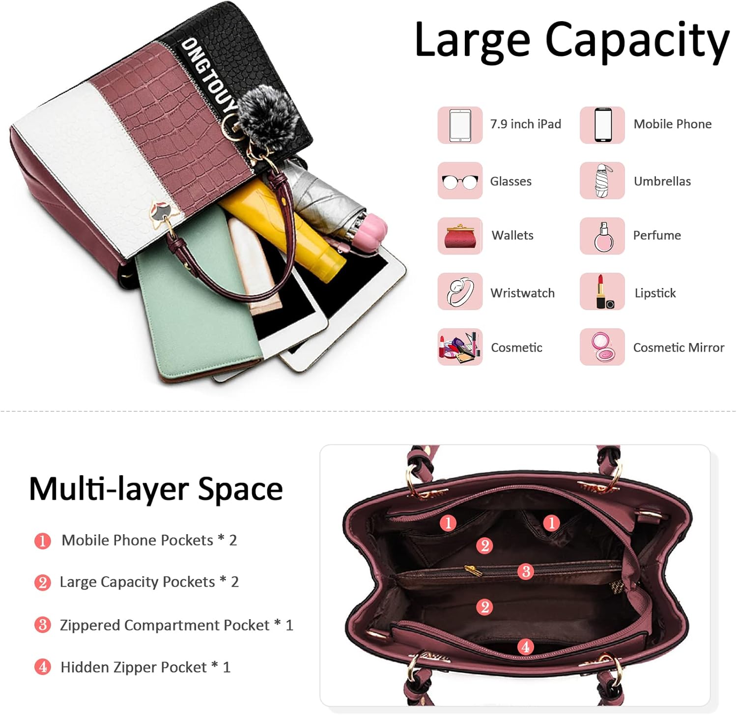 - Struktur: Design in 3 verschiedenen Farbkombinationen. Stilvolles und schickes Design. 1 * Tasche mit grosser Kapazität. Innere eine Reissverschlusstasche. 2 kleine Taschen auf der Innenseite. Es kann Ihre täglichen Dinge wie Kosmetik, Sonnenbrille,