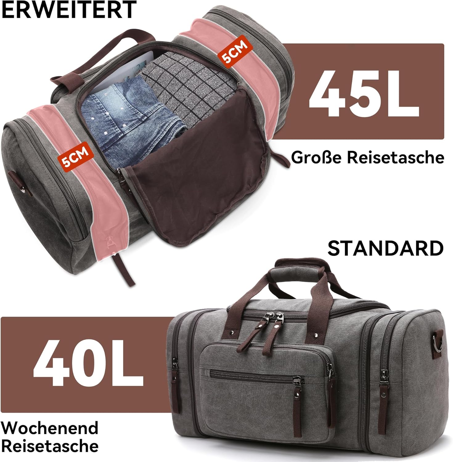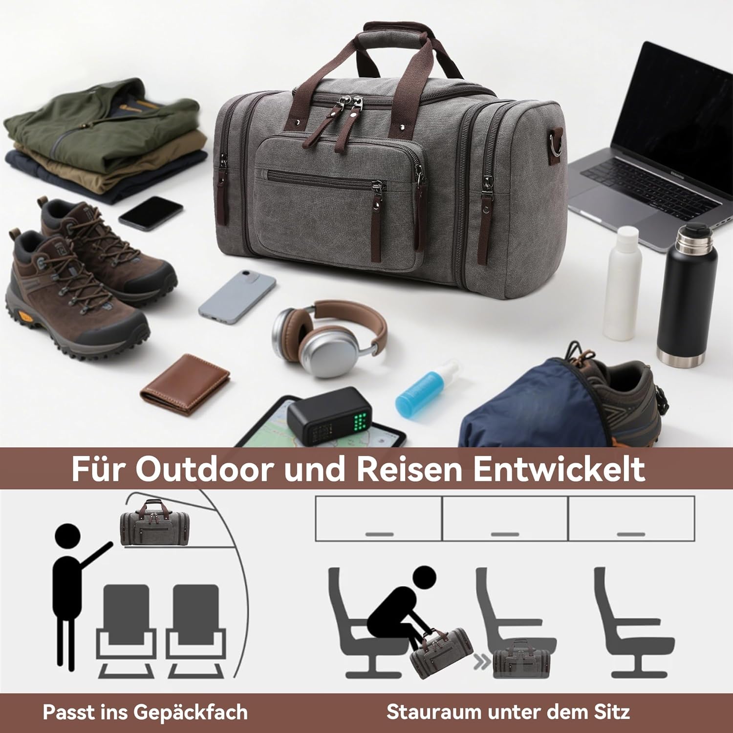 - Qualität und Langlebigkeit: Diese modische Reisetasche für Herren besteht aus hochwertigem Canvas-Material, Polyesterfutter, starken Reissverschlüssen und einer hochwertigen Schnalle. Doppellagige, durch Handarbeit verstärkte Schultergurte, die nicht