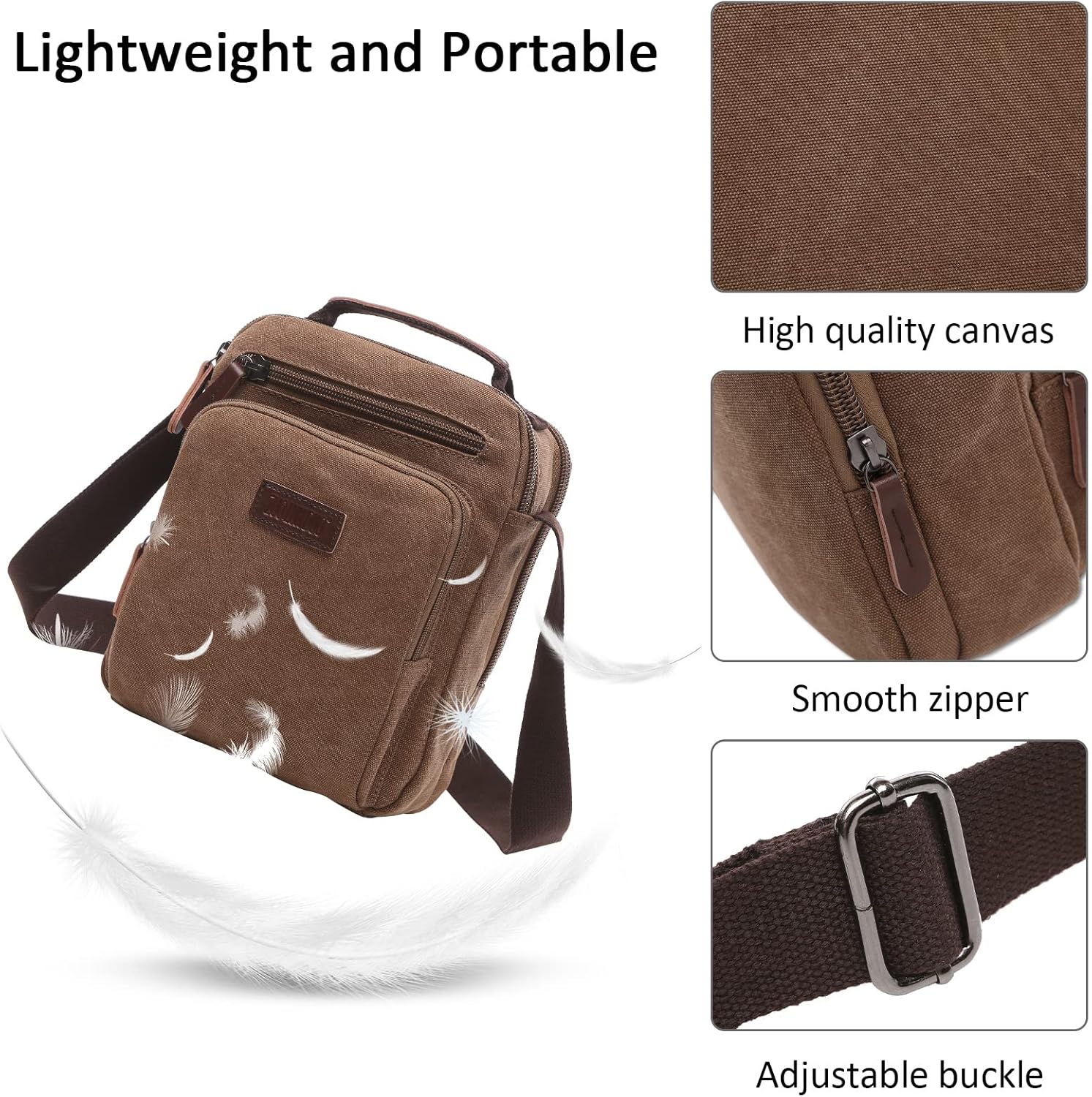 - Premium-Material: Die Tasche besteht aus hochwertigem Canvas-Material mit Polyesterfutter und einem strapazierfähigen und glatten Reissverschluss. Die hochwertigen Materialien, die bei der Herstellung dieser Umhängetasche verwendet werden, sorgen für
