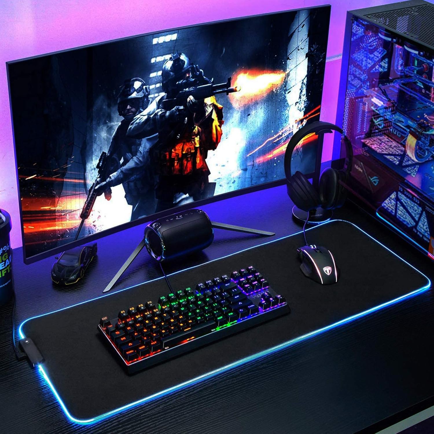 DORRISO RGB Gaming Mauspad 900x400x3mm XXL RGB LED Schreibtischunterlage Grosse Mousepad Wasserdicht