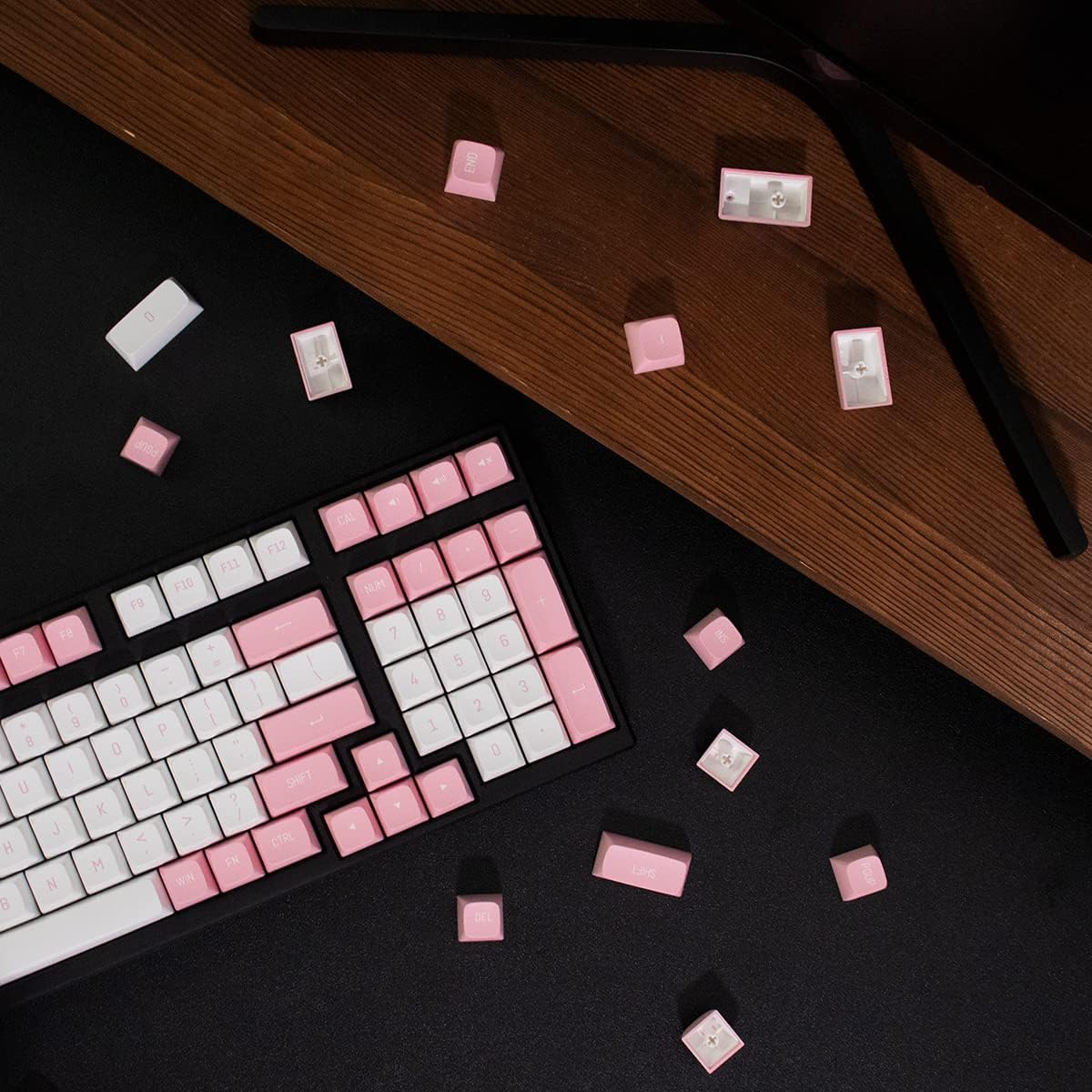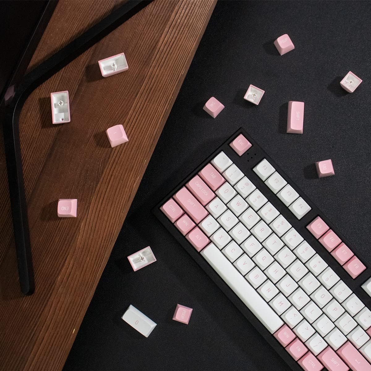 • Doppelschussformung: Diese Tastenkappen sind aus zwei Schichten Kunststoff hergestellt, die ineinander geformt sind, für ein angenehmes Gefühl und klare Zeichen. Sie nutzen sich nicht ab und verlieren mit der Zeit Buchstaben.