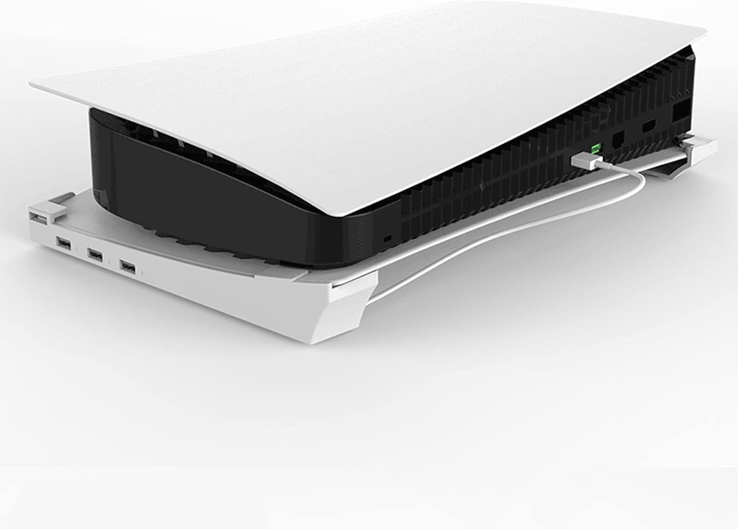- Horizontaler Standfuss für Spielkonsolen: Der Standfuss für PS5 verfügt über einen USB 2.0-Datenanschluss und drei USB-Ladeanschlüsse, was die Verwendung bequemer macht.