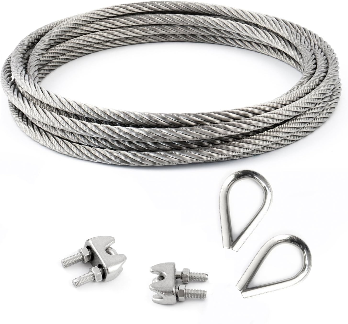 - - SET - Edelstahlseil + 2 passende Drahtseilklemmen (Bügelklemmen) + 2 passende Kauschen.