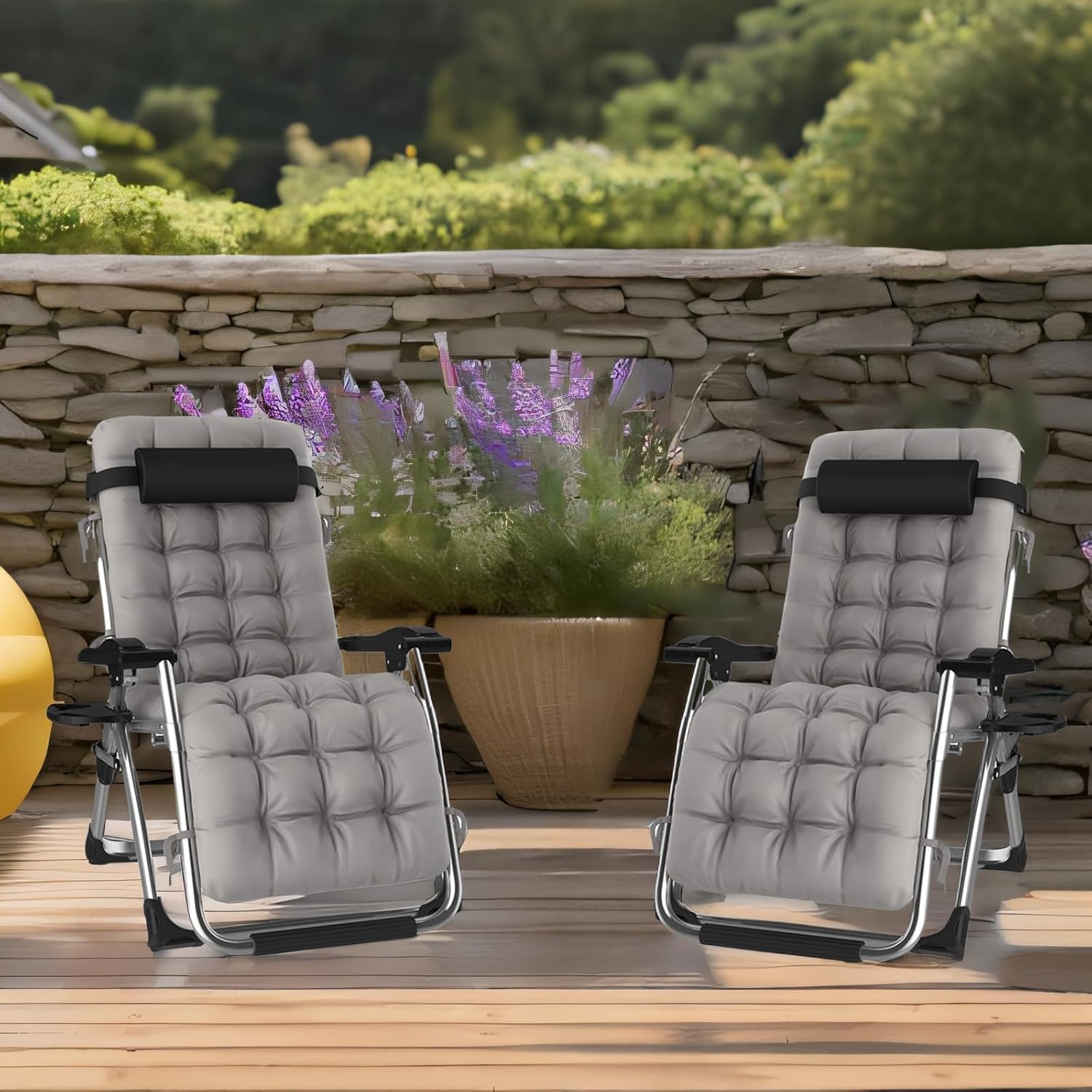 - ➤ Hochwertige Schwerelosigkeitsstühle - Hochwertiges, UV-beständiges Atmungsaktiv-Gewebe + Stabiler Stahlrohrrahmen + Abnehmbares Kissen + Perlbaumwollkissen + Universalschalenhalter