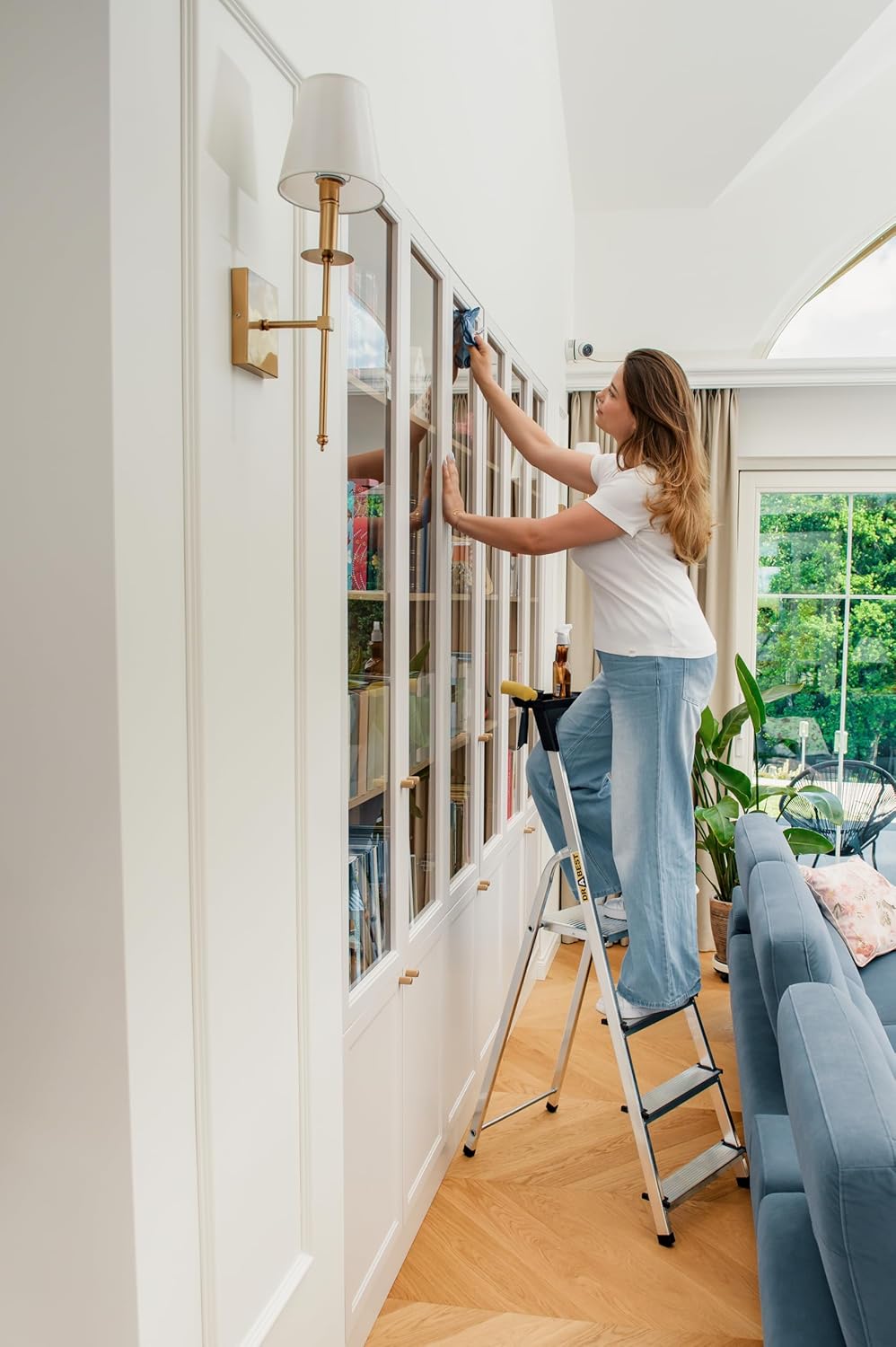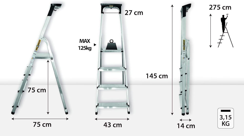 - Robuste Haushaltsleiter aus leichtem Aluminium