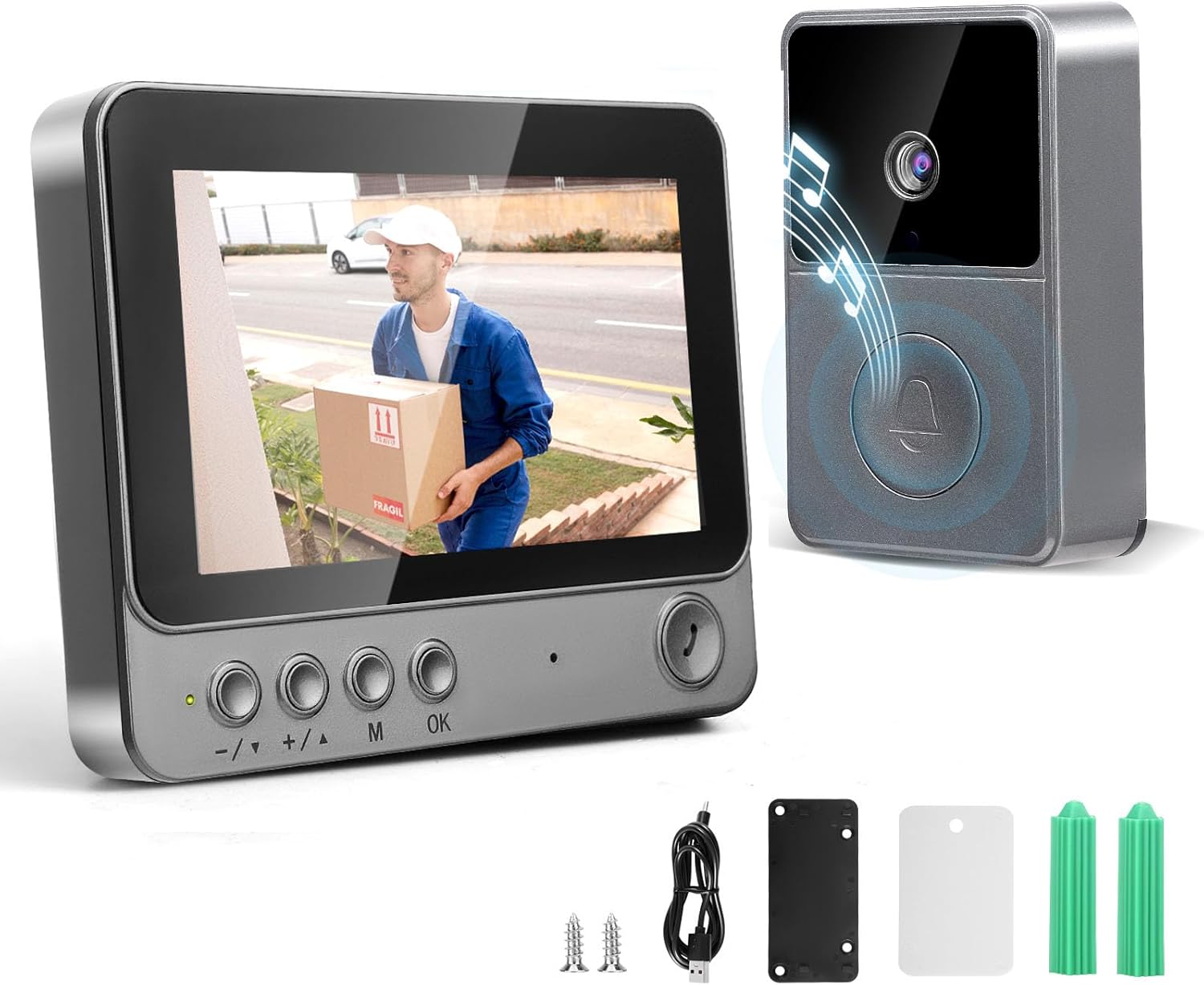 - 【2,4G Drahtlose Verbindung】Türklingel funk keine notwendigkeit, die app zu installieren und herunterzuladen, kein netzwerk erforderlich, 2.4g drahtlose bluetooth verbindung, ein schlüssel paarung, 4,3 zoll ips bildschirm, volle