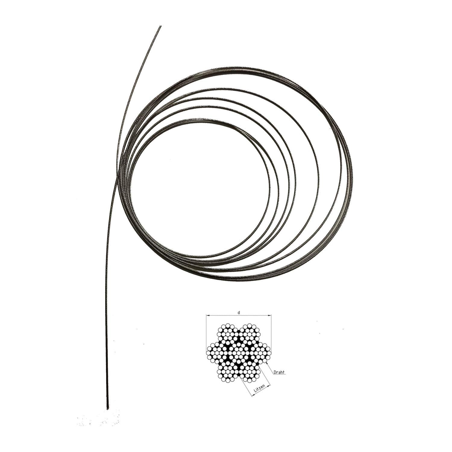 - Typ: sehr weiches und flexibles Drahtseil mit 133 Einzeldrähten
