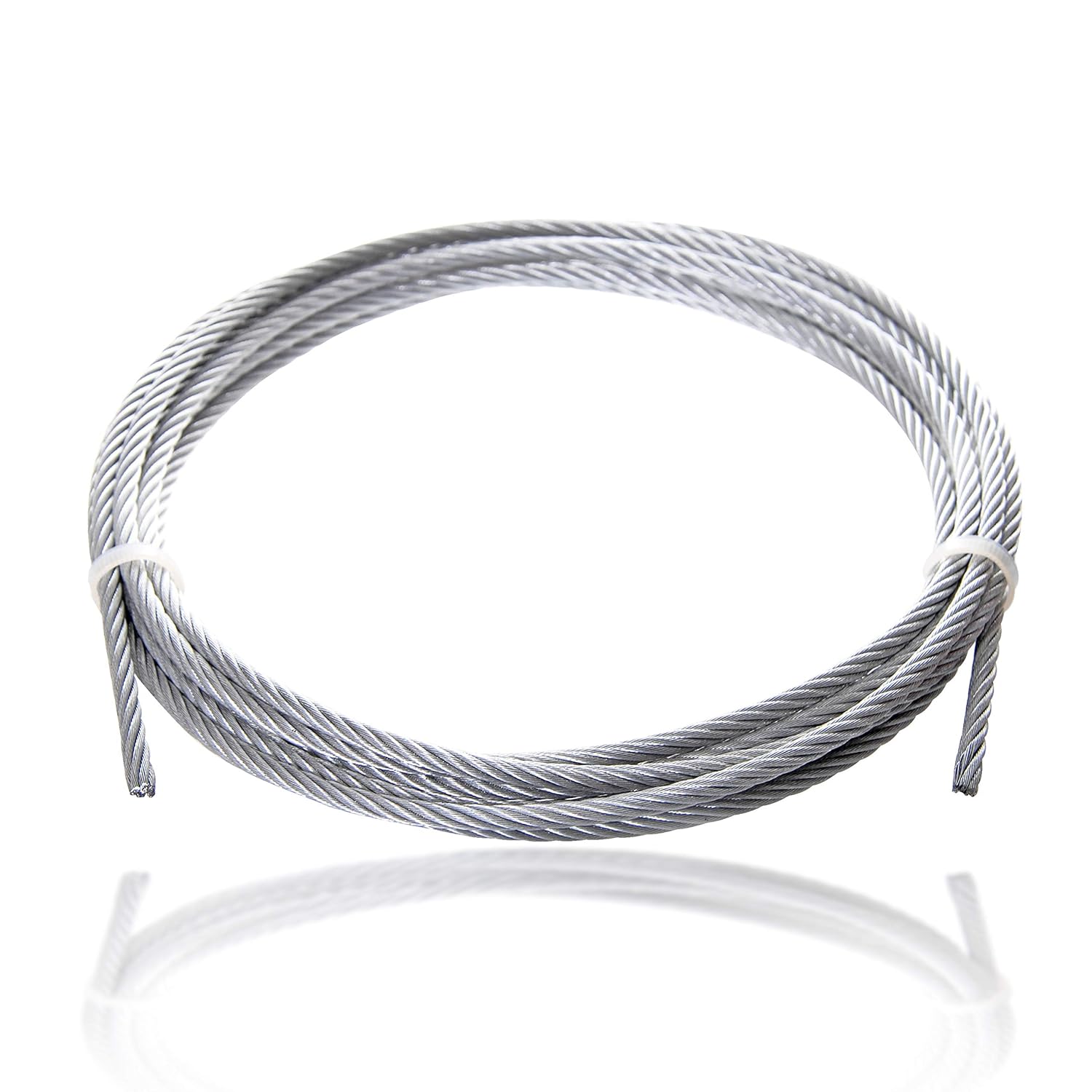 - 【Grosse Auswahl 】Silberne Stahldrahtseile in vier verschiedenen Konstruktionen: 7x7, 6x19, 7x19 und 6x37. Dabei handelt es sich um 6 oder 7 Litzen mit jeweils 7, 19 oder 37 Drähten.