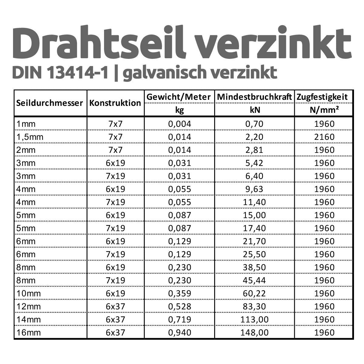 - 【Geprüfte Qualität】Verzinkte Drahtseil mit Kauschen aus hochwertigem Industriestahl nach DIN 13414-1 angefertigt. Erhältlich in Stärken von 1mm – 16mm und Längen von 0,5m – 200m.