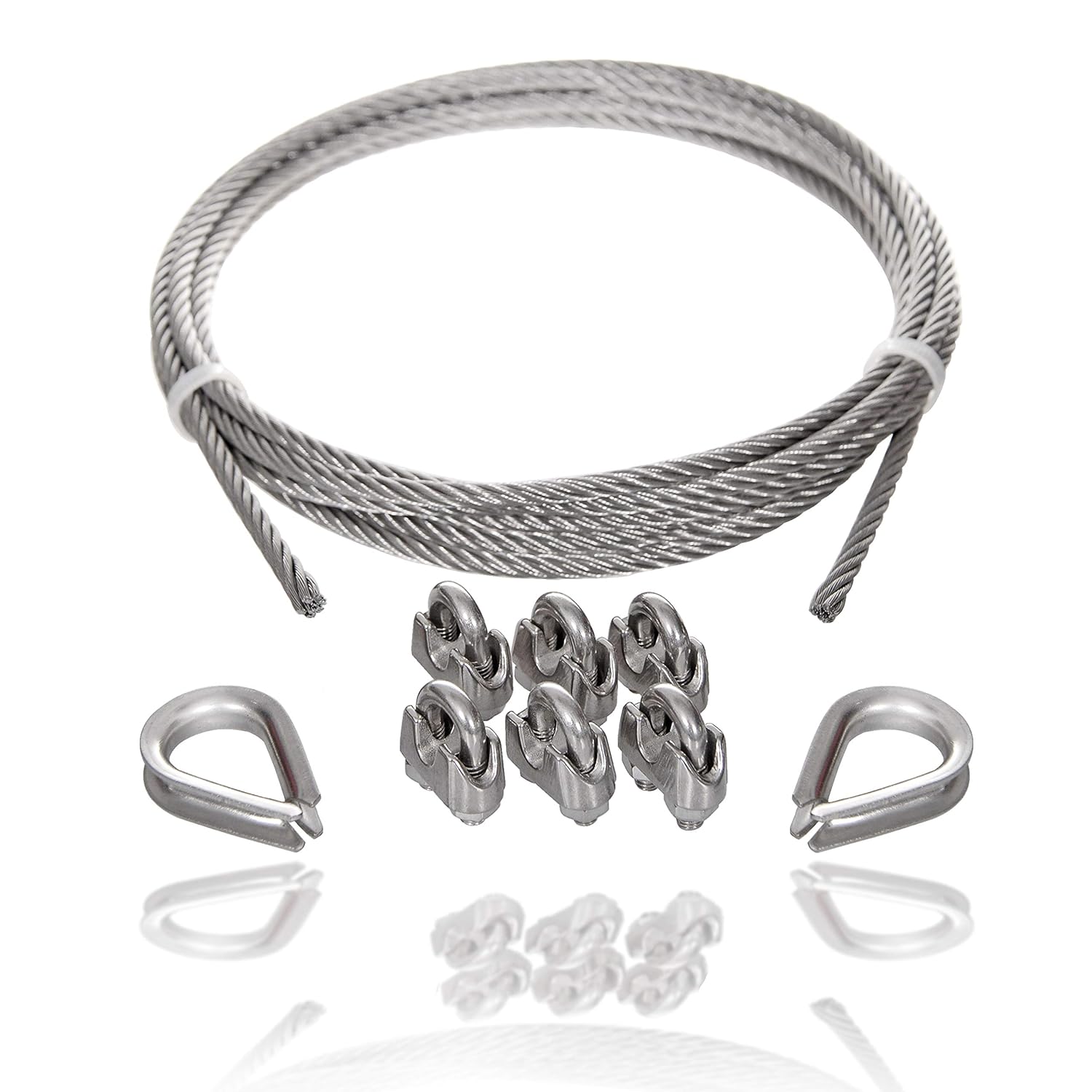 - 【Individuelle Einsatzbereiche】Edelstahl Drahtseil Seilsets eignen sich optimal für eine Selbstmontage: Die Edelstahl Bügeklemmen werden auf zwei Drahtseilteile gepresst und mit Kauschen.
