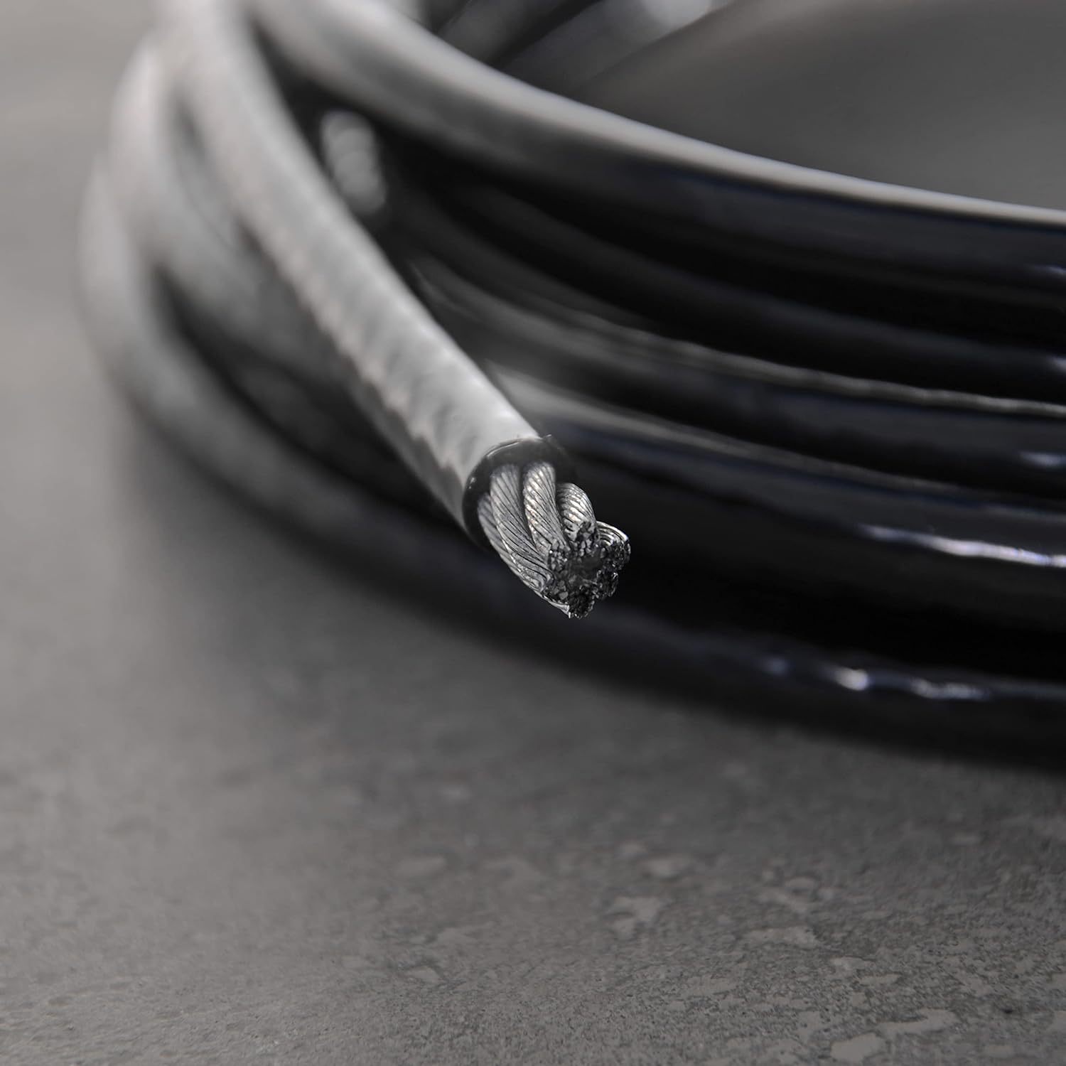 - 【Strapazierfähige Verarbeitung】Das schwarze Stahlkabel, sowie die Pressklemmen sind zum Schutz mit einem 1-2mm starken, schwarzen PVC Mantel umgeben. Die PVC-Ummantelung schützt ihre Gegenstände vor Abrieb und Kratzern.