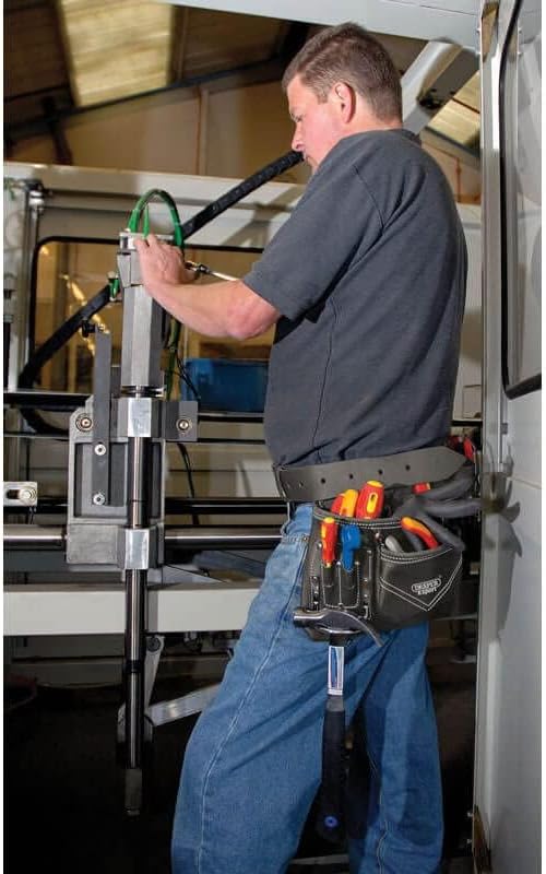- Der ölgegerbte Lederbeutel-Werkzeuggürtel von Draper Tools besteht aus ölgegerbtem Leder, das mit Nieten verstärkt ist, das ein leichter, glatter und haltbarer Stoff ist. Es bietet zahlreiche Möglichkeiten zur Aufbewahrung von Werkzeugen