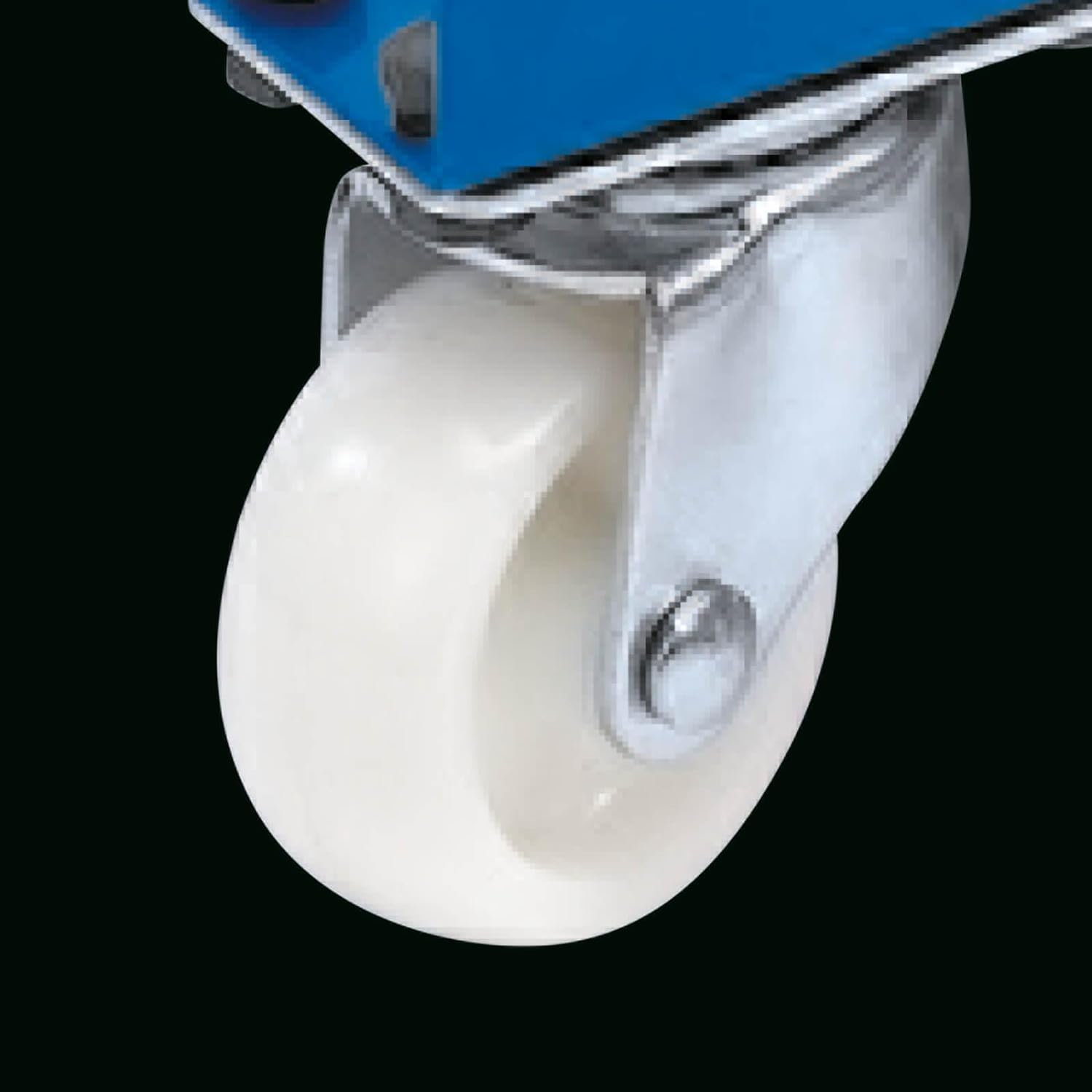 - Jeweils ausgestattet mit vier robusten, weissen, abriebfesten Rollen.