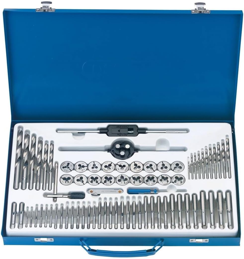 - Lieferumfang:Gewindebohrer, Vorschneider, Fertigschneider und Schneideisen und Gewindebohrerhalter, Schneideisenhalter, Halter für Gewindebohrer, Schraubenzieher, Screwpitch.