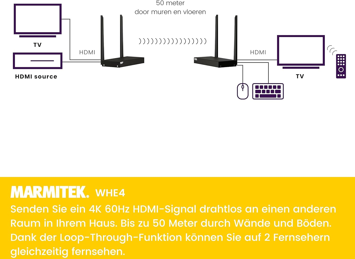 - 50 METER RAUM DURCH WÄNDE UND DECKEN - Mit dem WHE4 können Sie Ihr HDMI-Signal drahtlos in einen anderen Raum (bis zu 50 Meter) senden. Dank der 4K-Qualität treten keine Qualitätsverluste auf